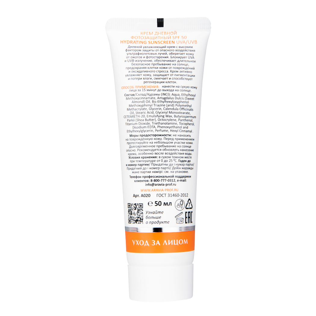 Крем для лица Aravia Laboratories дневной солнцезащитный SPF50, 50мл