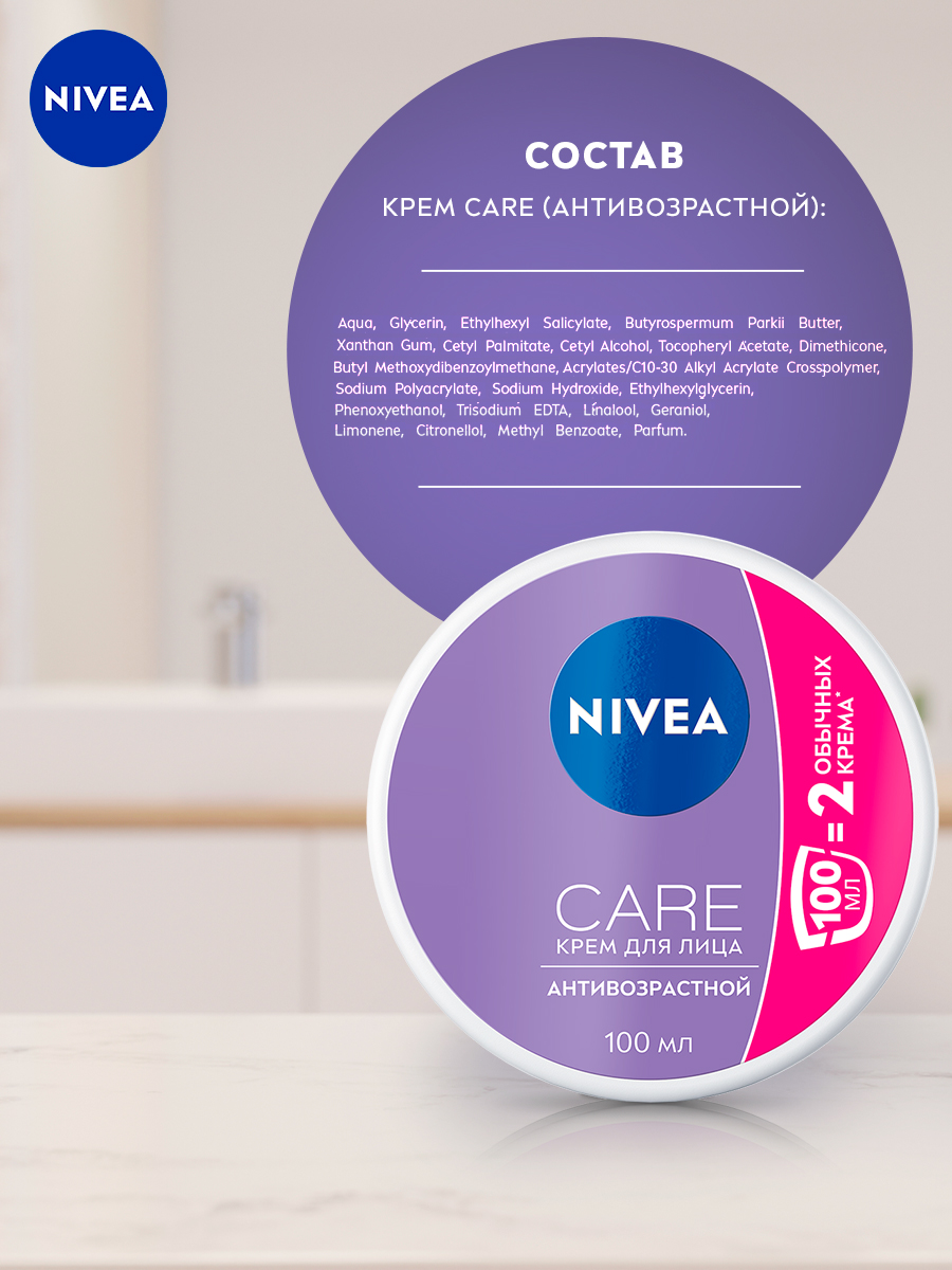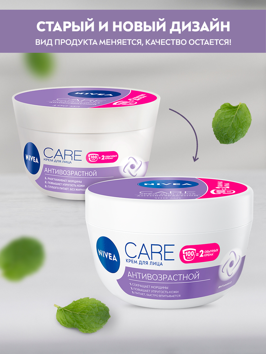Крем для лица Nivea Care антивозрастной увлажняющий против морщин, повышающий упругость кожи, 100мл