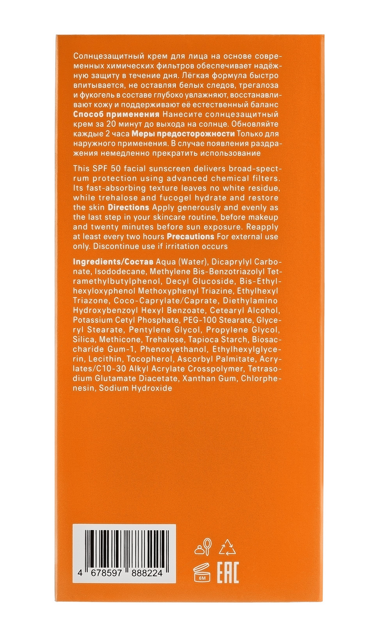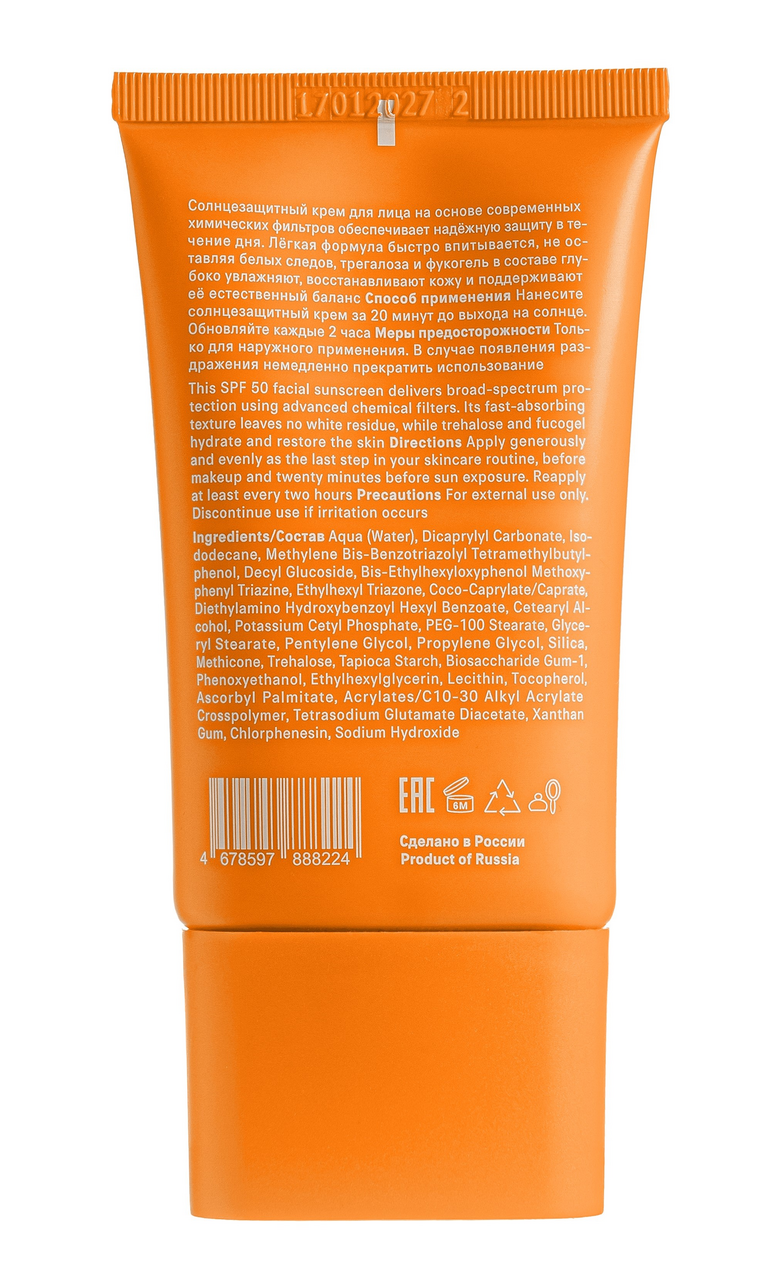 Ежедневное воздействие солнечных лучей может незаметно накапливать повреждения, приводя к сухости, потере упругости и появлению пигментных пятен. Защитить кожу от этих воздействий можно, используя солнцезащитный крем для лица The Act SPF 50. Ежедневное воздействие солнечных лучей может незаметно накапливать повреждения, приводя к сухости, потере упругости и появлению пигментных пятен. Защитить кожу от этих воздействий можно, используя солнцезащитный крем для лица The Act SPF 50. Крем обеспечивает защиту от UVA и UVB-лучей, предотвращает солнечные ожоги, поддерживает оптимальный уровень увлажнённости кожи даже под палящим солнцем, а также борется с фотостарением благодаря защитным и ухаживающим компонентам. Продукт эффективен не только летом, но и в условиях городского солнца или зимнего отдыха, что делает его универсальным средством для любого времени года. SPF 50 - это высокая степень защиты, которая блокирует до 98% UVB-лучей. Такой уровень защиты идеально подходит для времени, когда УФ-индекс особенно высок, например, в летние месяцы, на пляже или в горах, а также для использования в условиях умеренного УФ-индекса, чтобы обеспечить максимальную профилактику фотостарения. Это идеальный выбор для чувствительной кожи, которая подвержена пигментации или склонна к солнечным ожогам. Лёгкая формула не закупоривает поры и не вызывает акне, что делает средство подходящим для всех типов кожи, включая сухую, жирную, проблемную и чувствительную. В составе современные химические фильтры, которые надёжно защищают кожу, не оставляя белого налёта, как это бывает с минеральными аналогами. Такие фильтры устойчивы к разрушению под воздействием солнца, обеспечивая долгую и стабильную защиту в любых условиях. Как правильно использовать средство? Наносите за 20 минут до выхода на солнце. Для поддержания надёжной защиты его нужно обновлять каждые два часа, особенно после купания или интенсивного потоотделения. Вечером средство необходимо тщательно смыть, используя гидрофильное масло для глубокого очищения кожи. Наносите крем в объёме примерно одной трети чайной ложки на лицо, чтобы достичь заявленной степени защиты. Рекомендовано к применению с 14 лет.