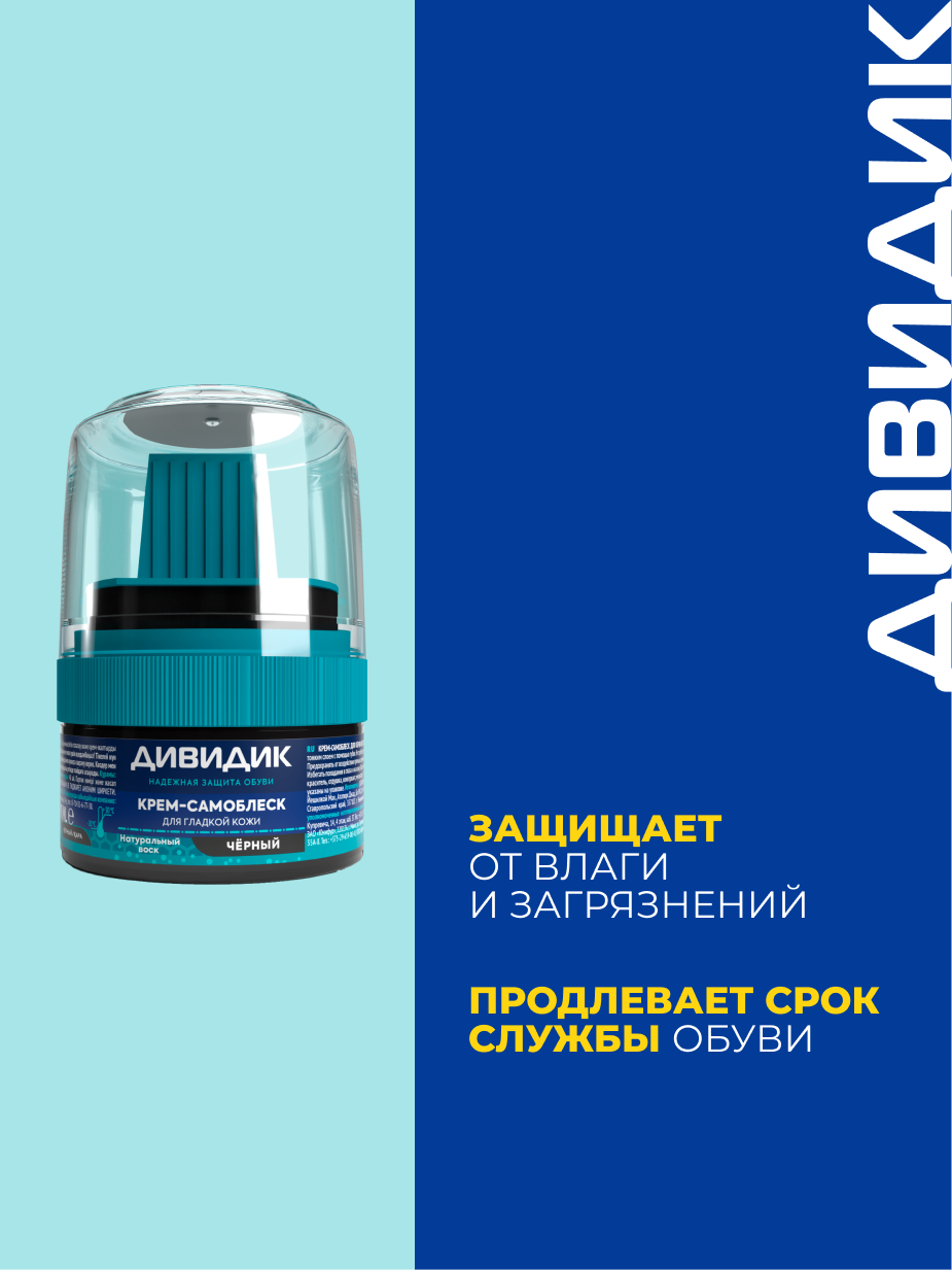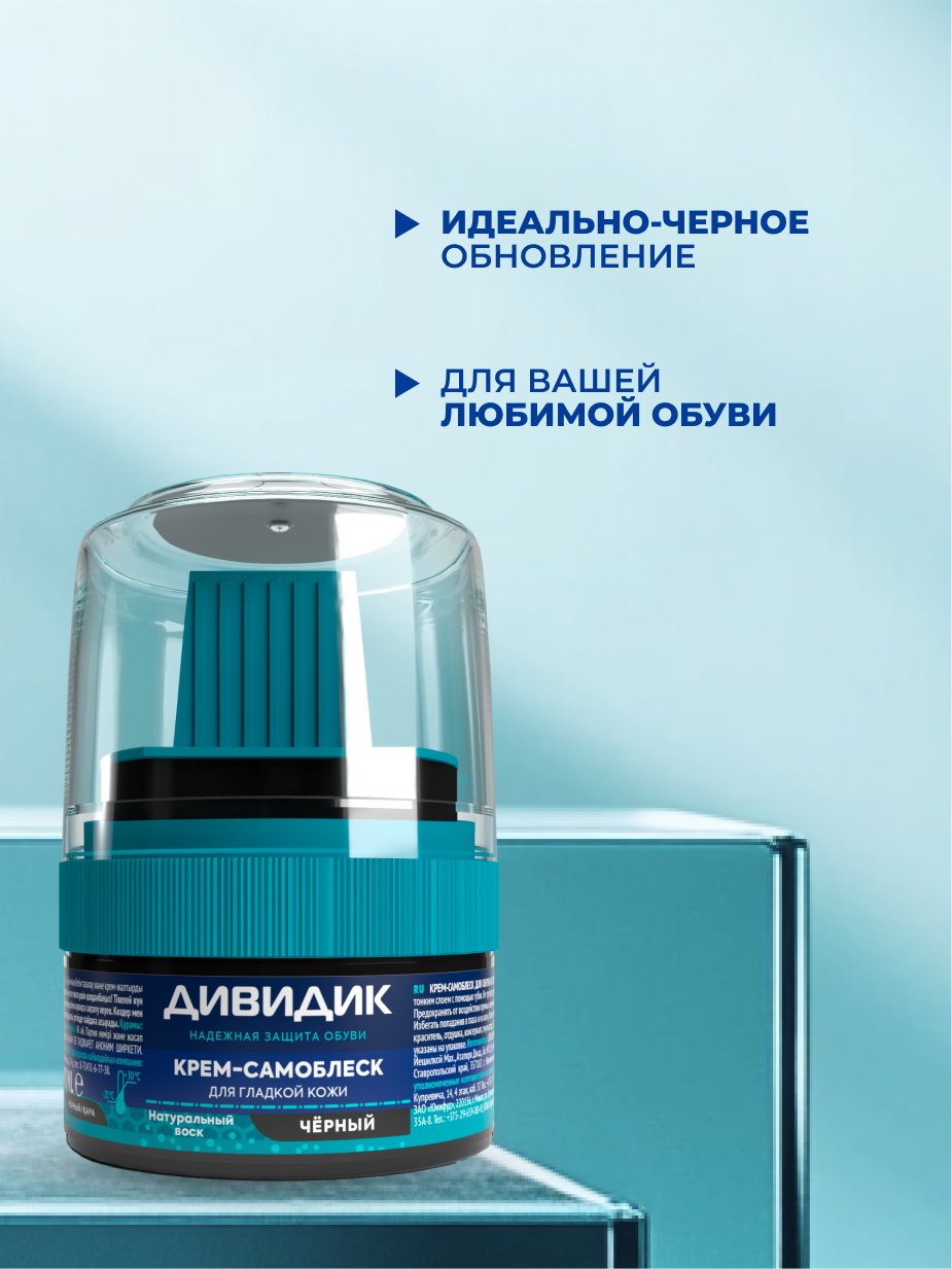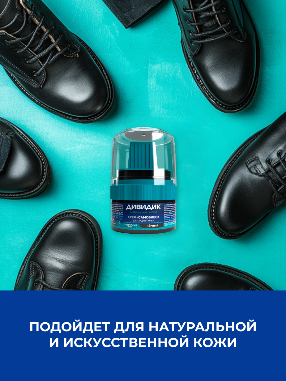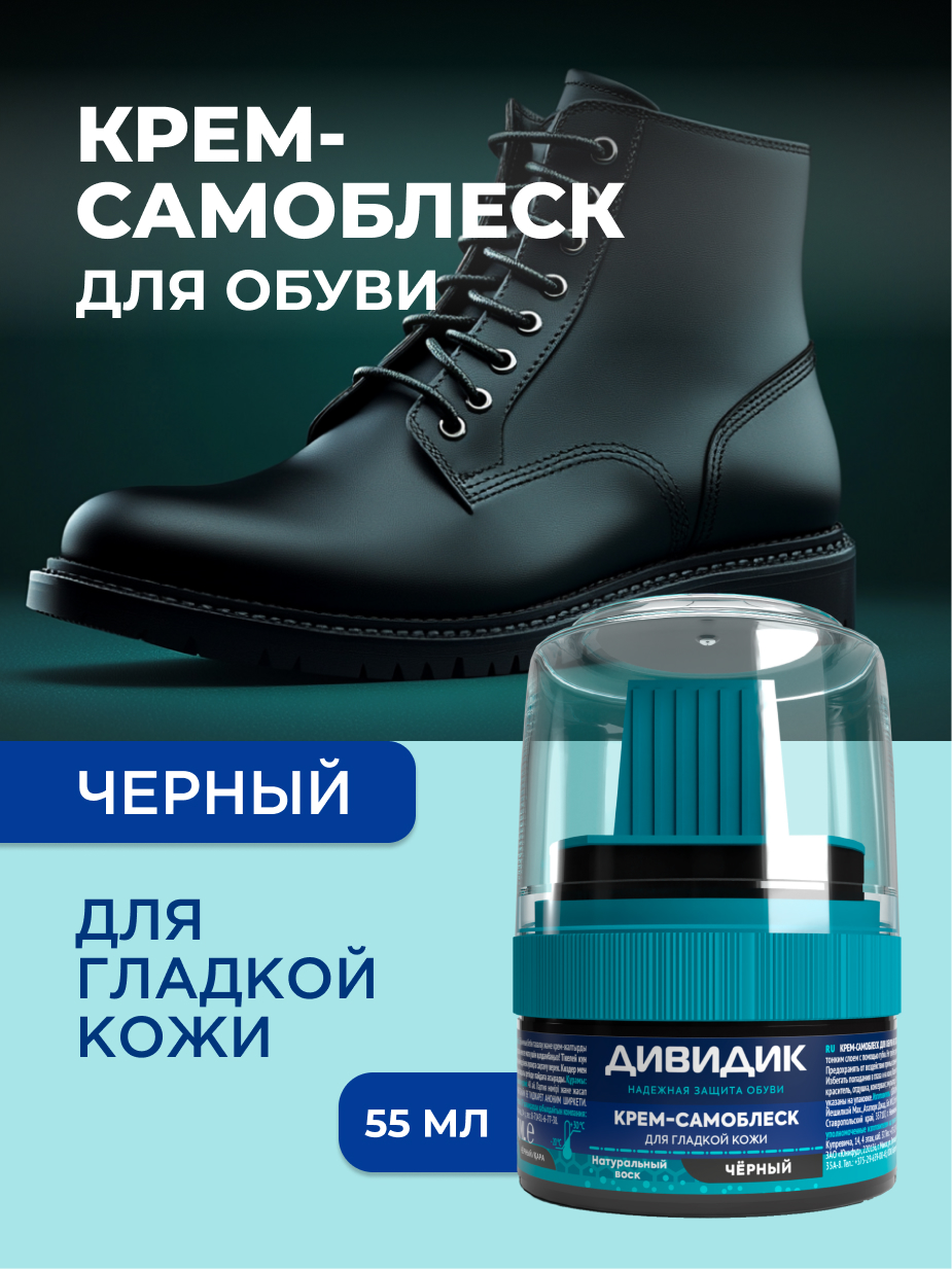 Крем для обуви Дивидик Самоблеск с намазком черный, 55мл