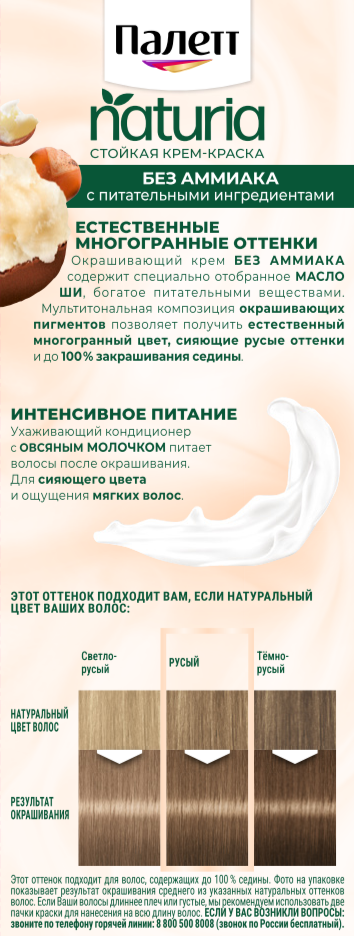 Крем-краска для волос Палетт Natura Средне-русый 7-0, 110мл