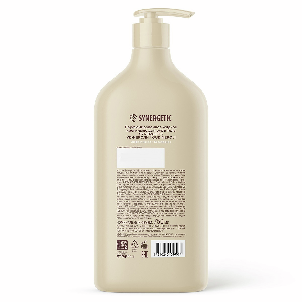 Крем-мыло Synergetic парфюмированное уд и нероли, 750мл