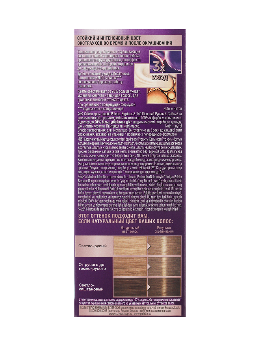 Крем-краска для волос Палетт Интенсивный цвет 8-140 Песочный русый, 110мл