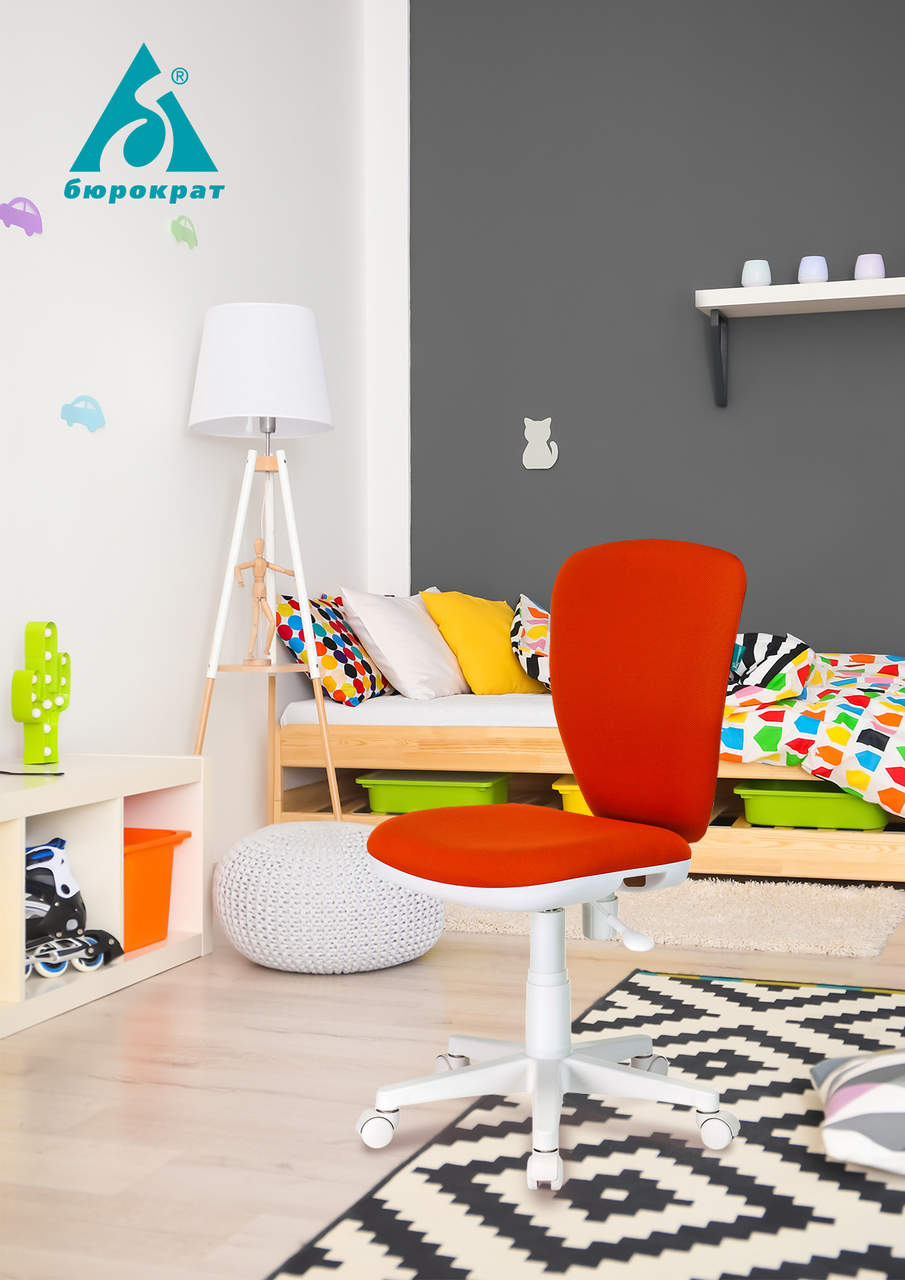 Кресло детское. Пружинно-винтовой механизм качания спинки. Регулировка высоты (газлифт). Нижний пластик сиденья. Подлокотники белый пластик. Крестовина белый пластик. Ограничение по весу 100 кг. Соответствует стандарту BIFMA.