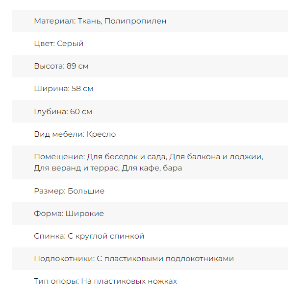 Кресло Folia, 59 x 57 x 85,5 см — это предмет садовой мебели, который дополнит приусадебный участок или частный дом. Оно поможет расслабиться во время беседы или чаепития. Несмотря на свою легкость, кресло отличается долговечностью и повышенной износоустойчивостью. За ним легко ухаживать – достаточно протирать влажной губкой или салфеткой для очищения от загрязнений. Конструкция кресла достаточно прочная, поэтому мебель выдерживает большую нагрузку. Представленная модель выполнена в универсальном и лаконичном цвете, поэтому будет уместно смотреться в интерьере любого загородного дома и садового участка. К тому такая цветовая палитра дает возможность сочетать это кресло с любой другой уже имеющейся у вас мебелью – в любом случае в результате получится органичны�� тандем.