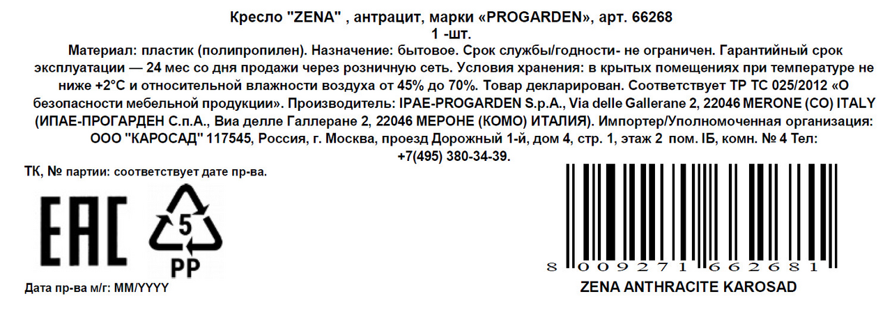 Кресло Zena, 55 x 56 x 89 см представляет собой красивый и прочный предмет садовой мебели, который станет отличным дополнением для приусадебного участка или частного дома. Специальный изгиб спинки и сиденья поможет спине расслабиться во время продолжительной беседы или чаепития. Материалом изготовления выступает полипропилен. Несмотря на свою легкость, он отличается долговечностью и повышенной износоустойчивостью. Ему не страшны царапины и потертости. Кресло устойчиво стоит на любой ровной поверхности. За ним легко ухаживать – достаточно протирать влажной губкой или салфеткой для очищения от загрязнений. Конструкция кресла достаточно прочная, поэтому мебель выдерживает нагрузку весом 120 кг. Представленная модель выполнена в универсальном и лаконичном цвете, поэтому будет уместно смотреться в интерьере любого загородного дома и садового участка. К тому такая цветовая палитра дает возможность сочетать это кресло с любой другой уже имеющейся у вас мебелью – в любом случае в результате получится органичный тандем.