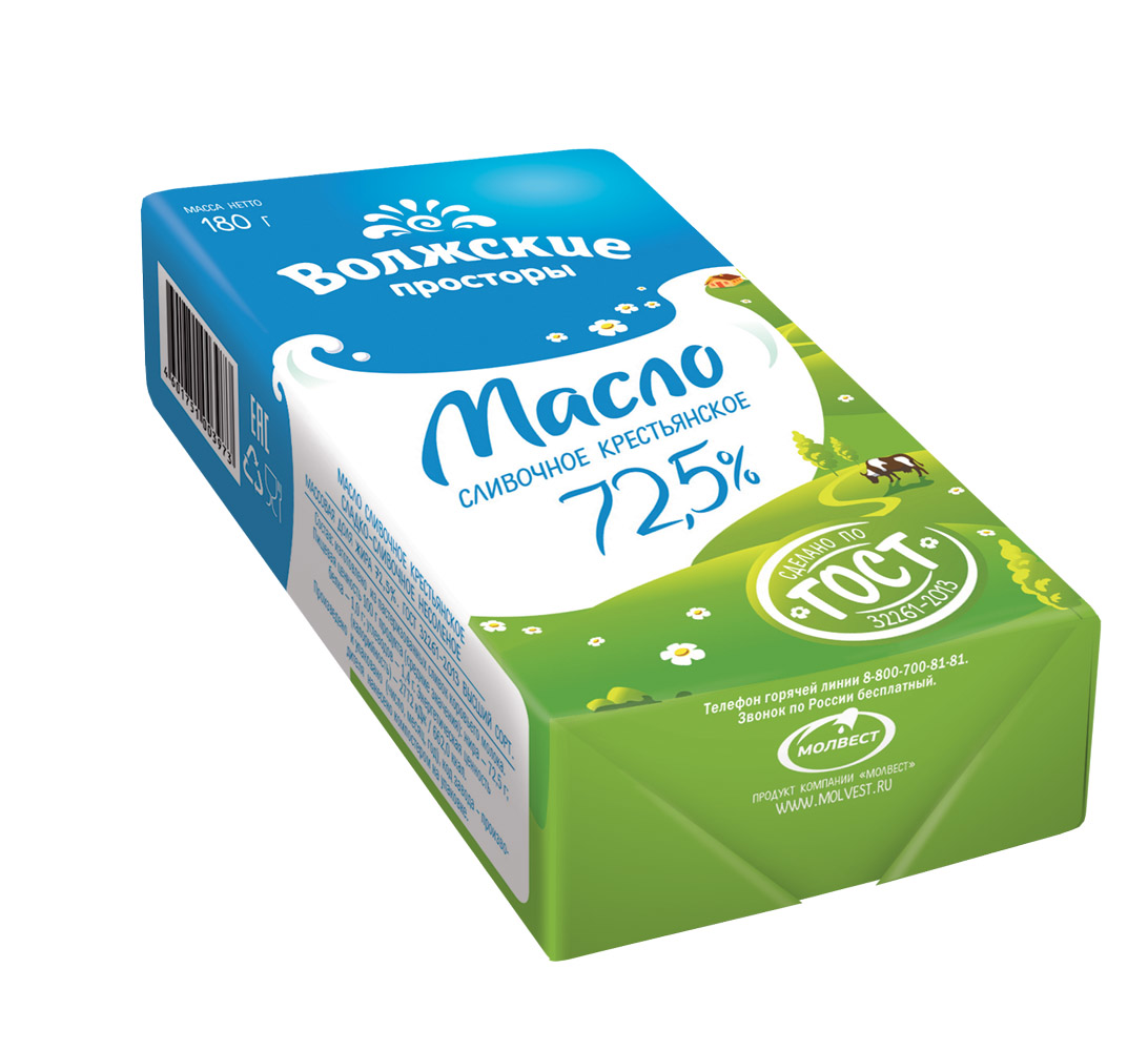 Масло сливочное Волжские просторы Крестьянское 72.5%, 180г