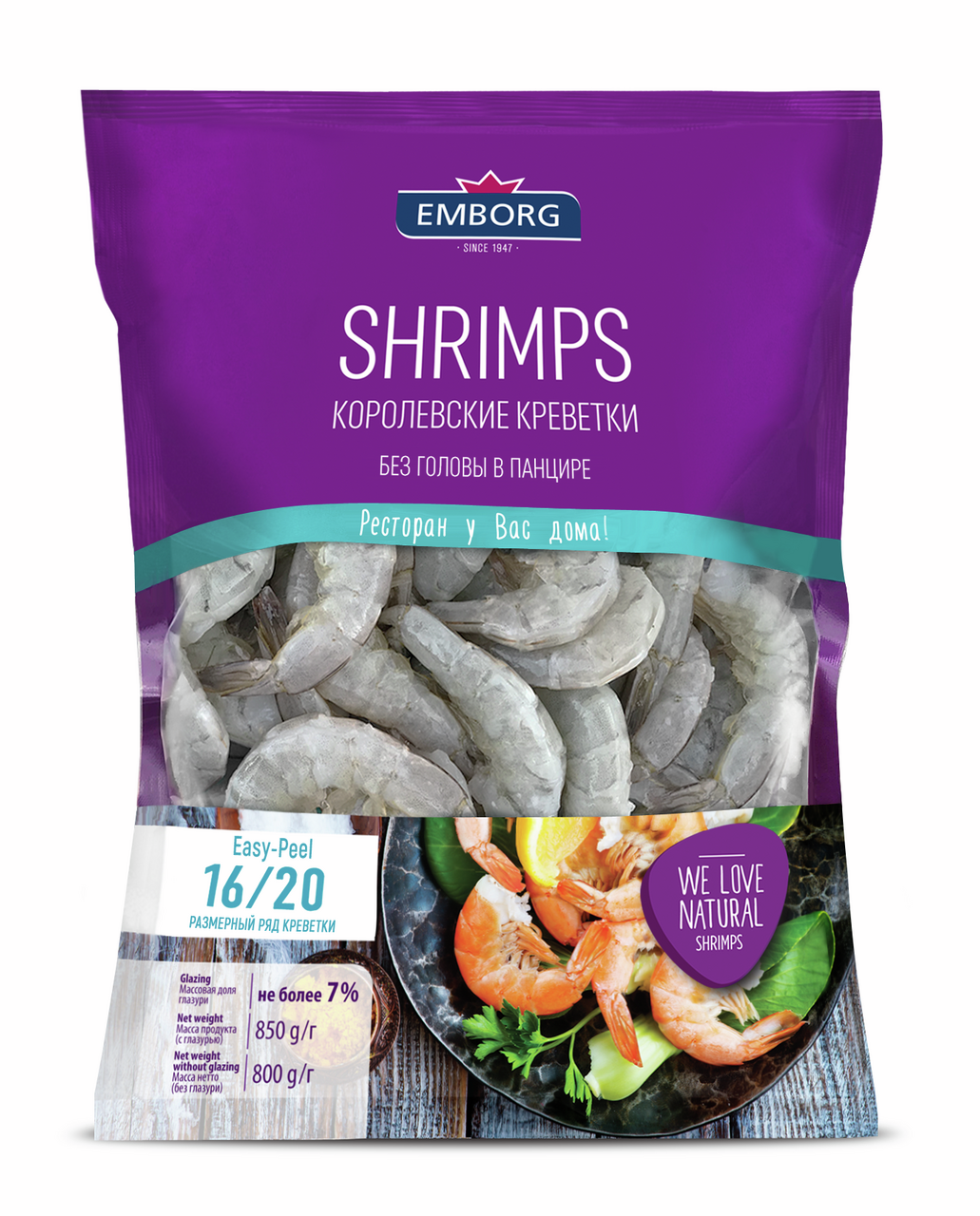 Крупные королевские креветки 16/20 Emborg Vannamei обладают насыщенным вкусом со сладковатыми нотами и могут подаваться как отдельная закуска, добавляться в салаты, использоваться в блюдах азиатской и средиземноморской кухни. Они выращиваются на фермах Индийского и Тихого океана в условиях, максимально приближенных к естественным. Богаты белком, содержат микроэлементы и другие полезные вещества. Продаются заморожеными, без головы в панцире, что удобно для дальнейшего приготовления.