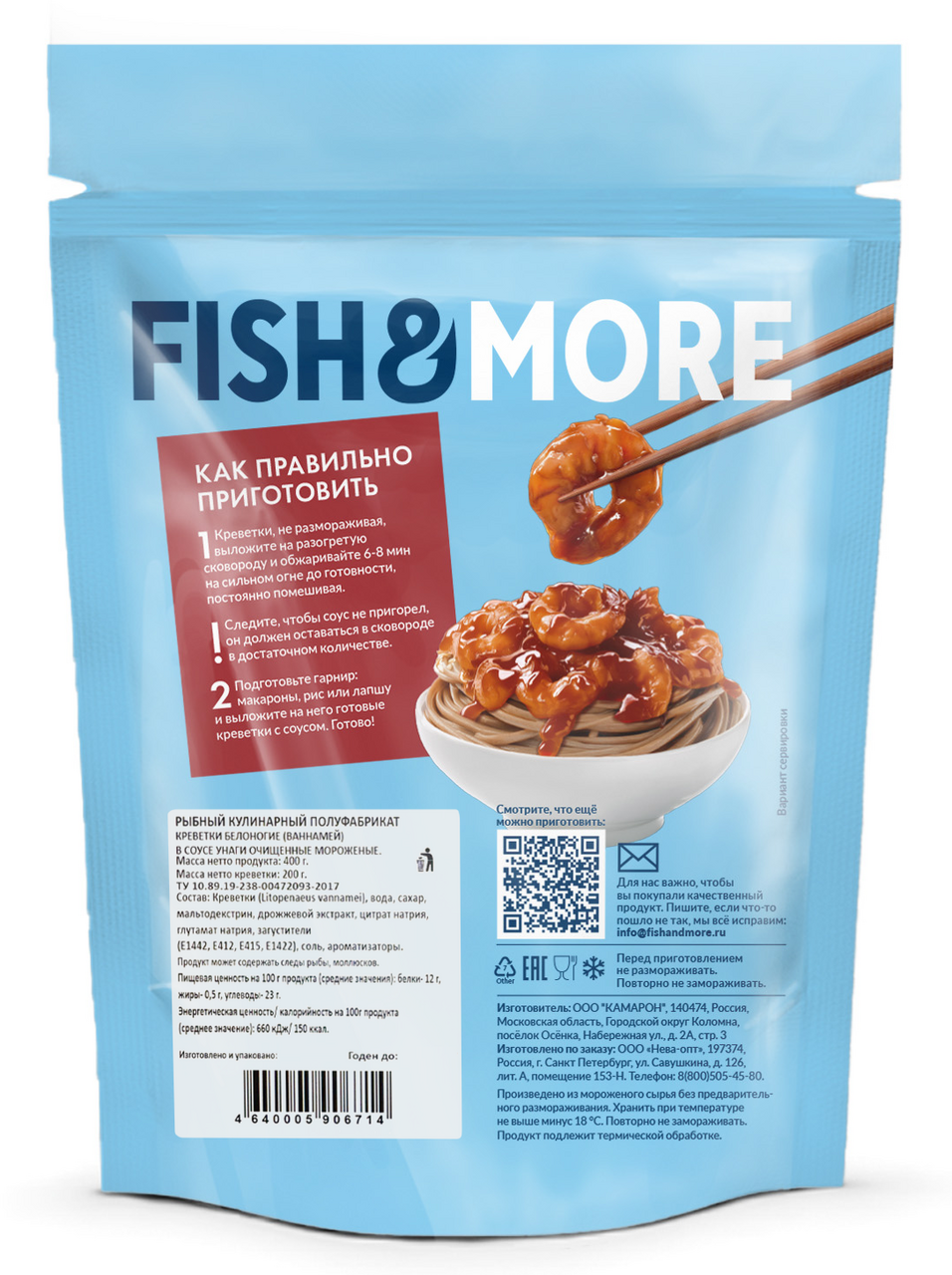 Креветки ванимей Fish&More в соусе унаги замороженные, 400г