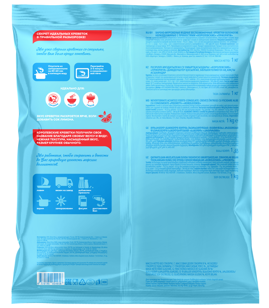 Креветки Vici Приорити королевские варено-мороженые 50/70, 1кг