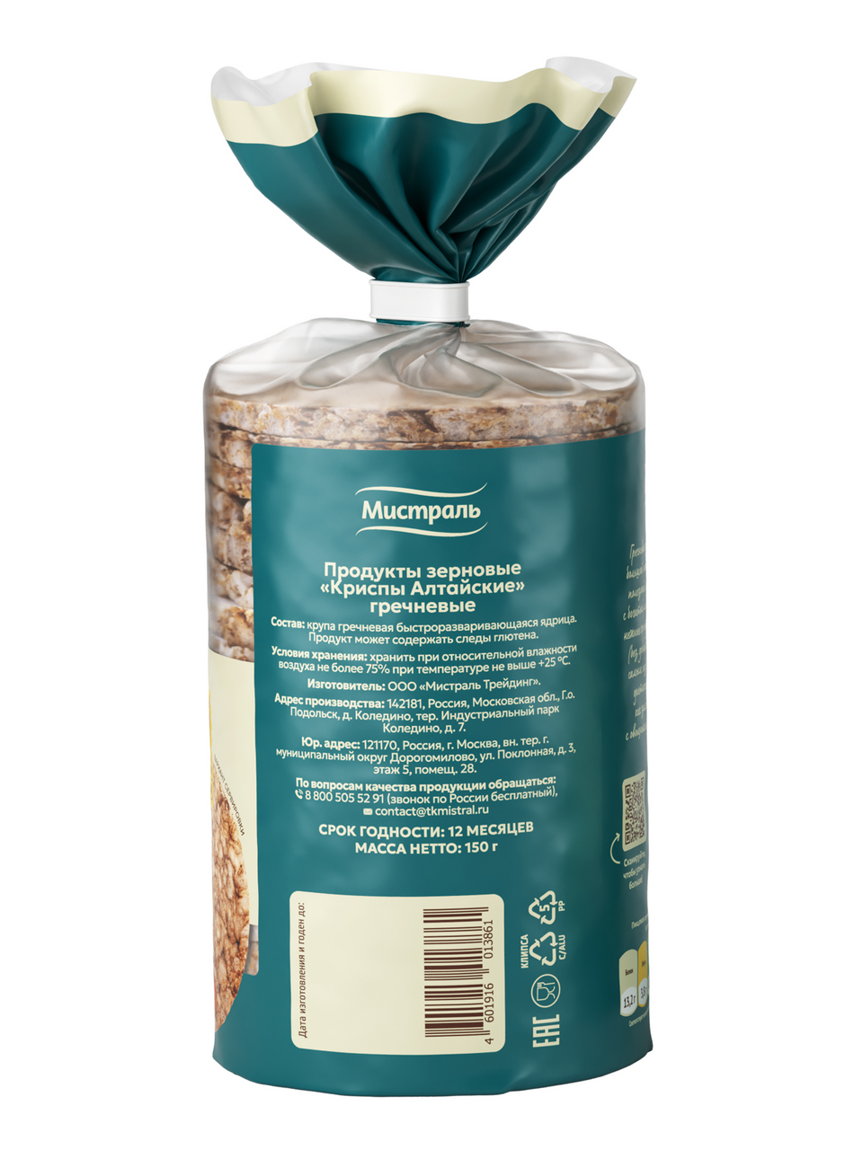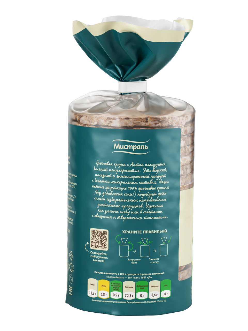 Гречневая крупа из Алтая пользуется большой популярностью. Это вкусный, полезный и гипоаллергенный продукт с богатым минеральным составом. Наши нежные хрустящие 100% гречневые криспы (без добавления соли!) подойдут даже самым избирательным потребителям диетических продуктов. Идеальны как замена хлебу или в сочетании с овощными и творожными топпингами.