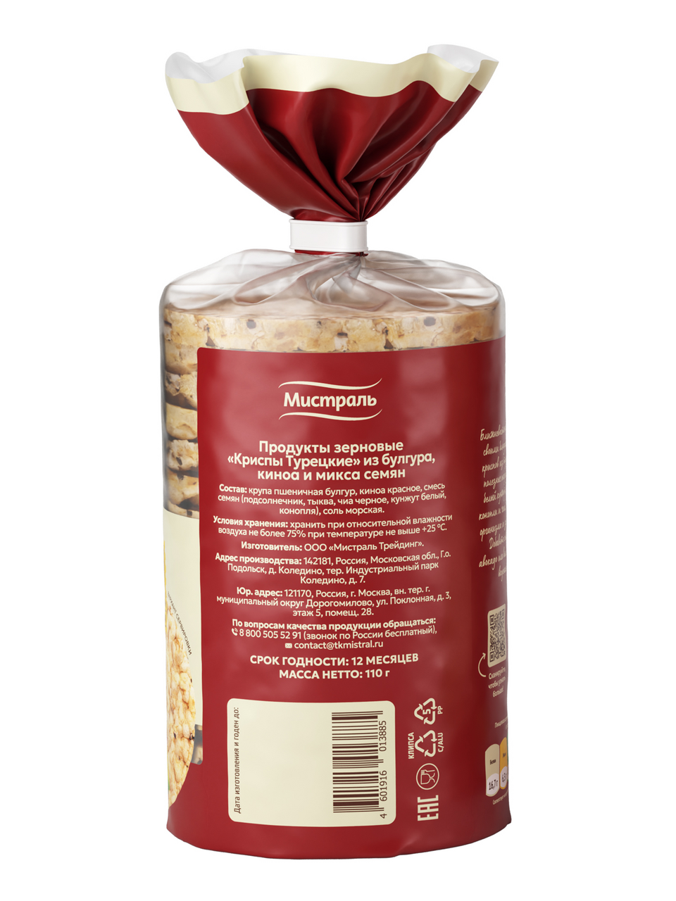Ближневосточная кухня традиционно славится своими блюдами из булгура. В состав наших криспов из турецкого булгура включены шесть полезных ингредиентов: красные зерна киноа, белый кунжут, семена тыквы, подсолнечника, конопли и чиа. Криспы способствуют насыщению организма и заряжают энергией на целый день. Добавьте свежую зелень, ломтики спелого авокадо или вяленого томата, и у вас получится вкусная и питательная закуска.