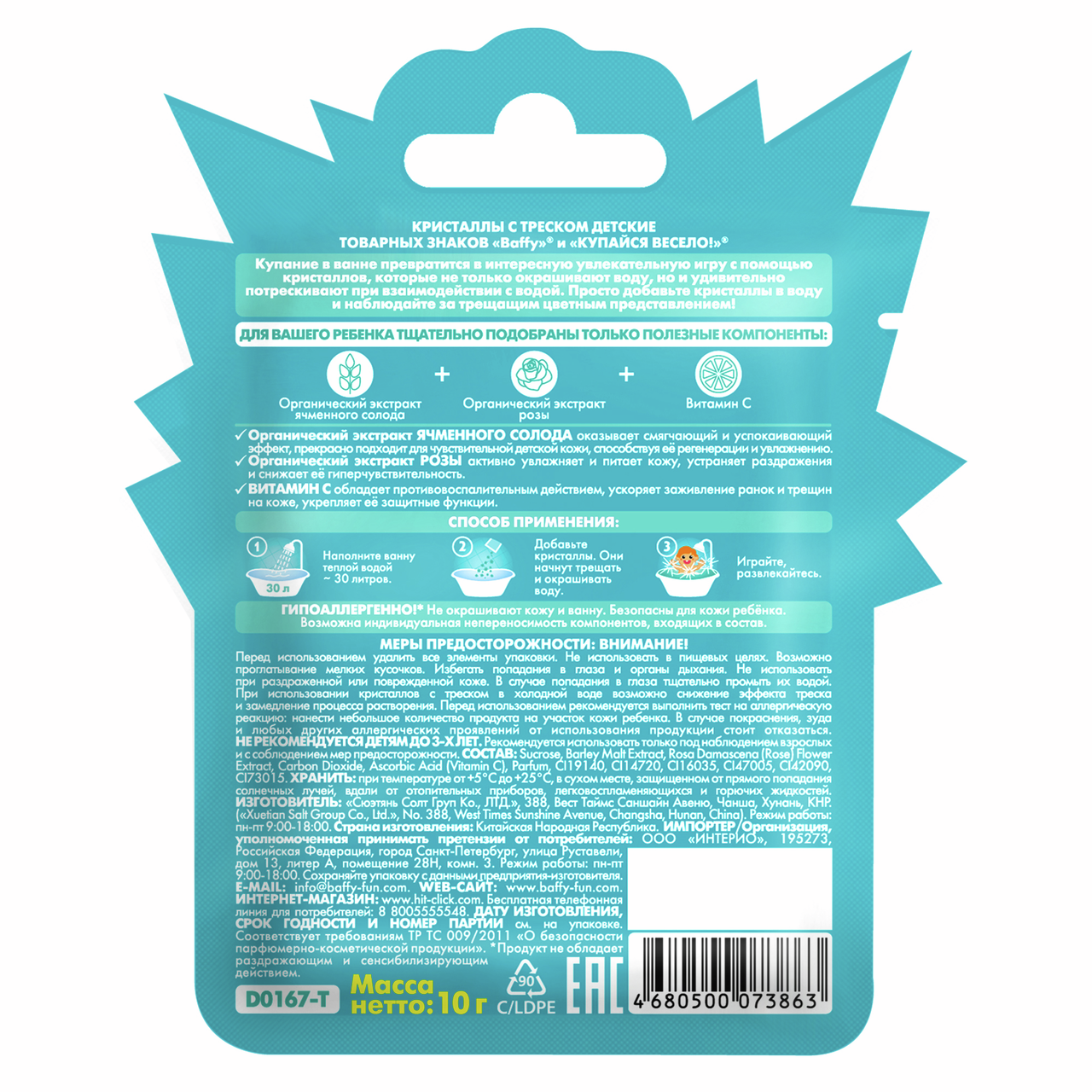 Кристаллы с треском для купания детские Baffy