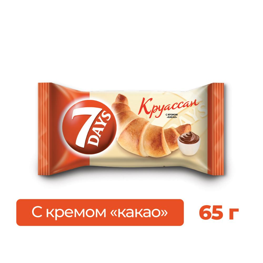 Участвует в конкурсе: Выиграйте кофемашину на сладкое! Совершите покупку товаров-участников на сумму от 1500₽ с 23 октября 2025г. по 14 января 2026г. и получите шанс выиграть кофемашину или другие сладкие призы! Чем больше покупок - тем больше шансов на победу! Подробнее об акции - https://cdn.metro-cc.ru/ru/mndlz_2025.pdf. Круассан 7 Days с кремом "какао" — вкус бестселлер*. Насыщенный яркий вкус крема какао в каждом круассане. Круассан 7 Days – это идеальный перекус в любое время дня. Он удобно упакован и готов к употреблению. Великолепный дуэт воздушного слоёного теста и нежной начинки поможет притупить чувство голода и сделает ваш день восхитительным.