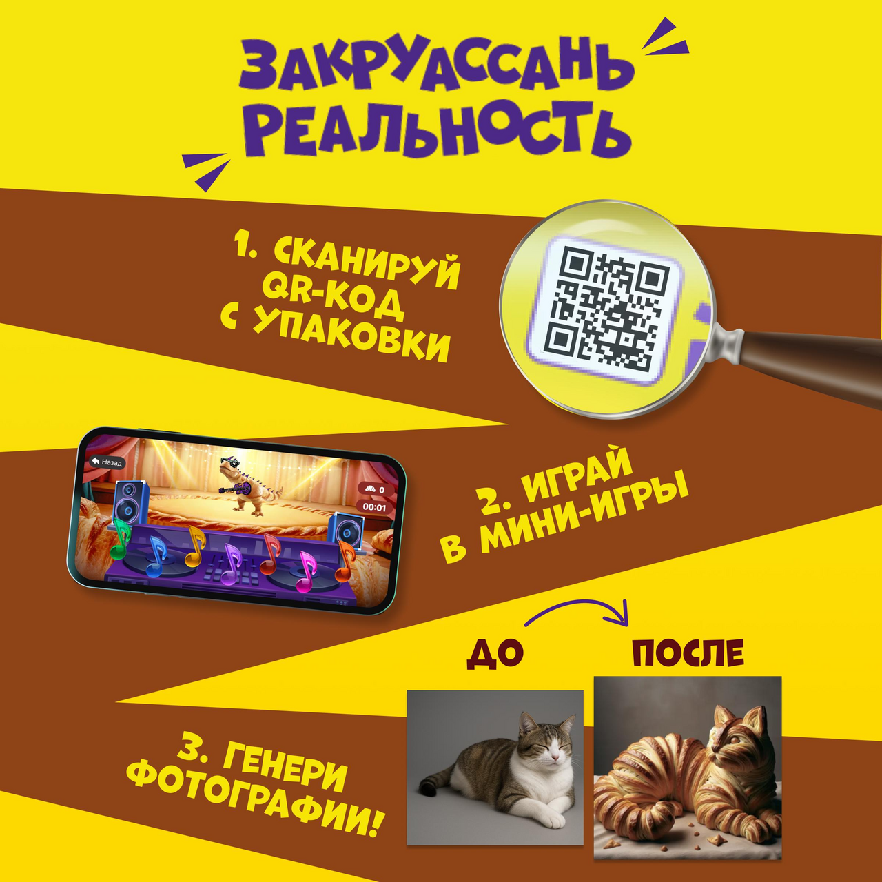 Круассан Chipicao с кремом какао — это сочетание воздушного слоеного теста и нежного тающего крема какао. Мягкая выпечка с насыщенным вкусом точно понравится всем любителям сладкого. Любишь шоколадные круассаны? Попробуй также Chipicao с кремом Какао. Круассан с кремом "какао" станет прекрасным вариантом для завтрака или перекуса в дороге или на учебе и подарит заряд позитивных эмоций. Выпечка отлично подходит к чаю и кофе. Ешьте круассан Chipicao с любимыми напитками или просто наслаждайтесь оригинальным вкусом! На каждой упаковке круассанов Chipicao размещен QR-код: наслаждайтесь и исследуйте мультивселенные!
