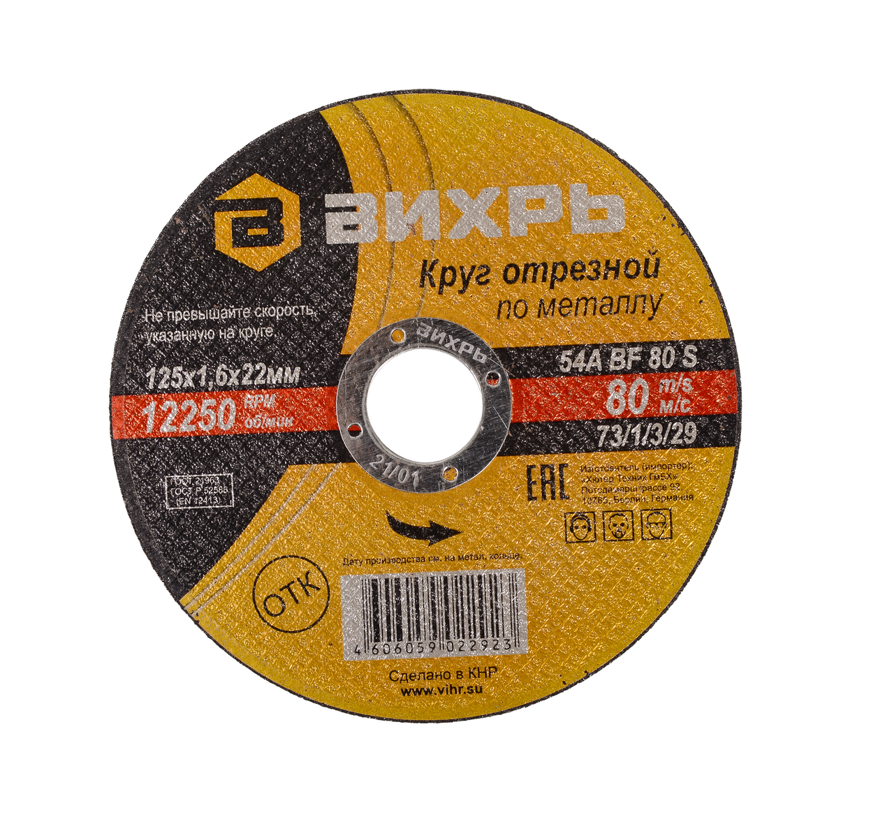 Круг отрезной Вихрь по металлу, 125 x 1.6 x 22мм