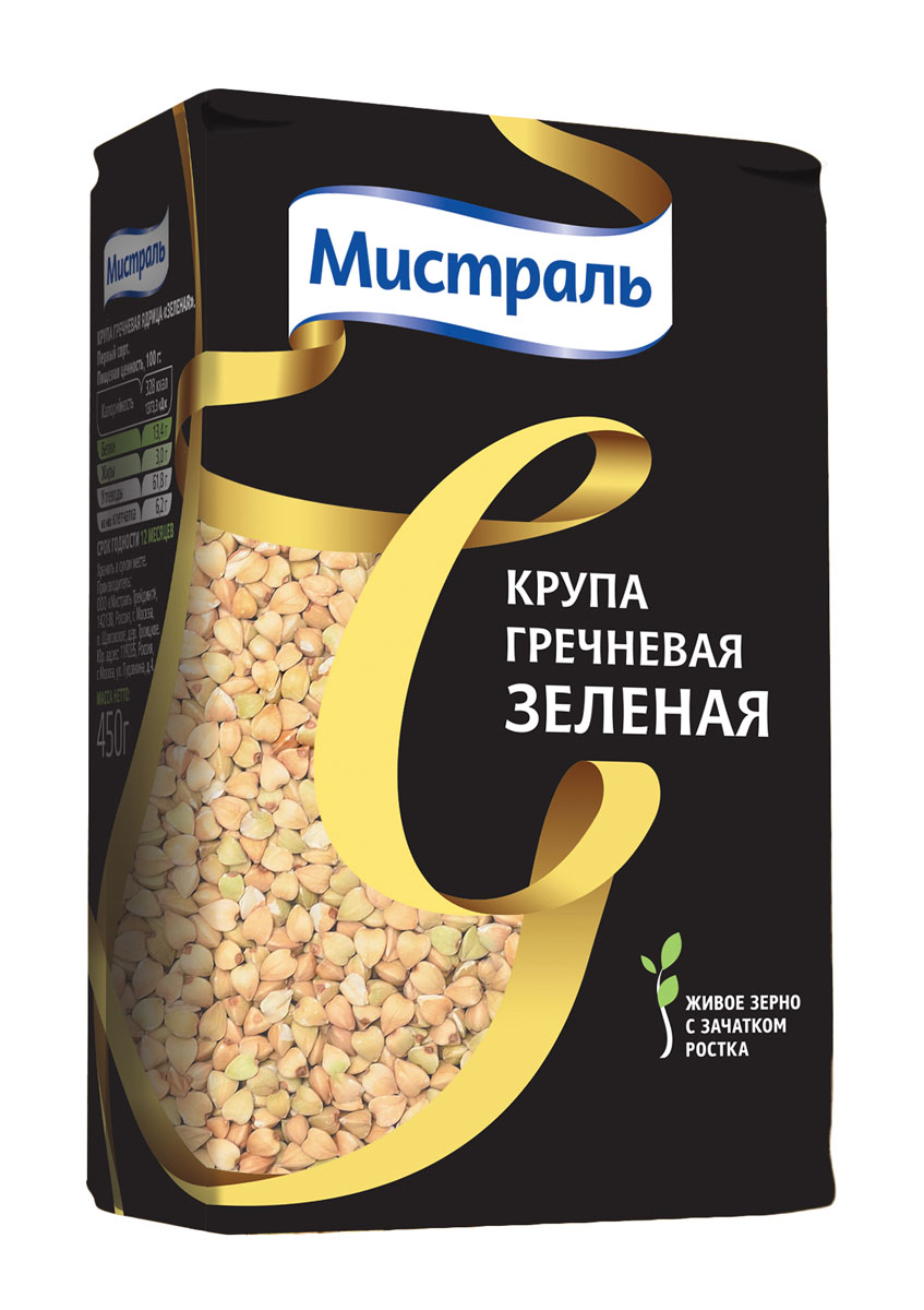 Крупа Мистраль гречневая "Зеленая", 450г.Первый сорт.Зеленая гречка - это продукт, в котором сохранились все лучшие природныекомпоненты. Зеленая гречка Мистраль не проходит процедуру пропаривания и обжарки, благодаря чему Ваши блюда станут ещевкуснее и полезнее. Не содержит ГМО.Пищевая ценность в 100г продукта: белки- 12,6г, жиры- 3,3г, углеводы-62,1г.Энергетическая ценность- 335 ккал.Хранить в сухом месте.Срок годности 12 месяцев.