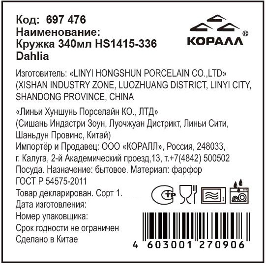 Коллекция посуды Dahlia изготовлена из фарфора. В коллекцию входят кружка, салатник, тарелка глубокая, тарелка обеденная и тарелка десертная. Чашка идеально подходит для чая, кофе, какао и других любимых напитков. Можно использовать в микроволновой печи и посудомоечной машине.
