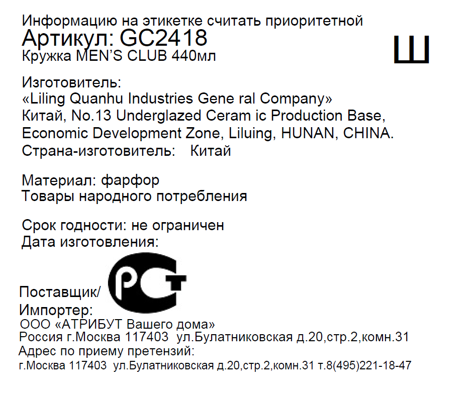 - Комплектация Кружка - 1 шт.
