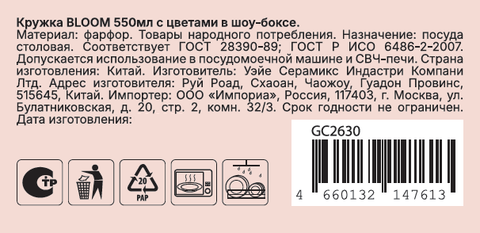 Кружка Bloom 550мл с цветами в шоу-боксе - это эффектная большая кружка с цветочным декором для тех, кто любит объём и визуал. Вместительная, удобная для дома и офиса, она идеально подходит для чая, кофе и напитков to-go. Поставляется в стильном шоу-боксе - готовое подарочное решение, которое точно привлечет внимание.
