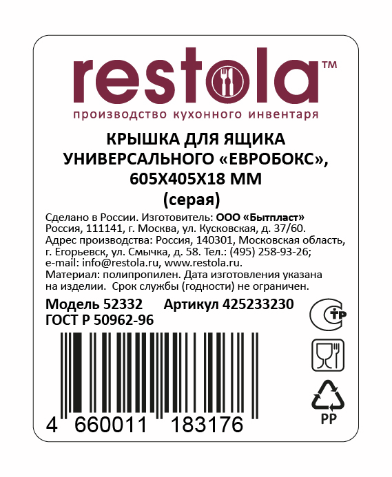 Крышка для ящика Restola Евробокс серая, 60.5 x 40.5см