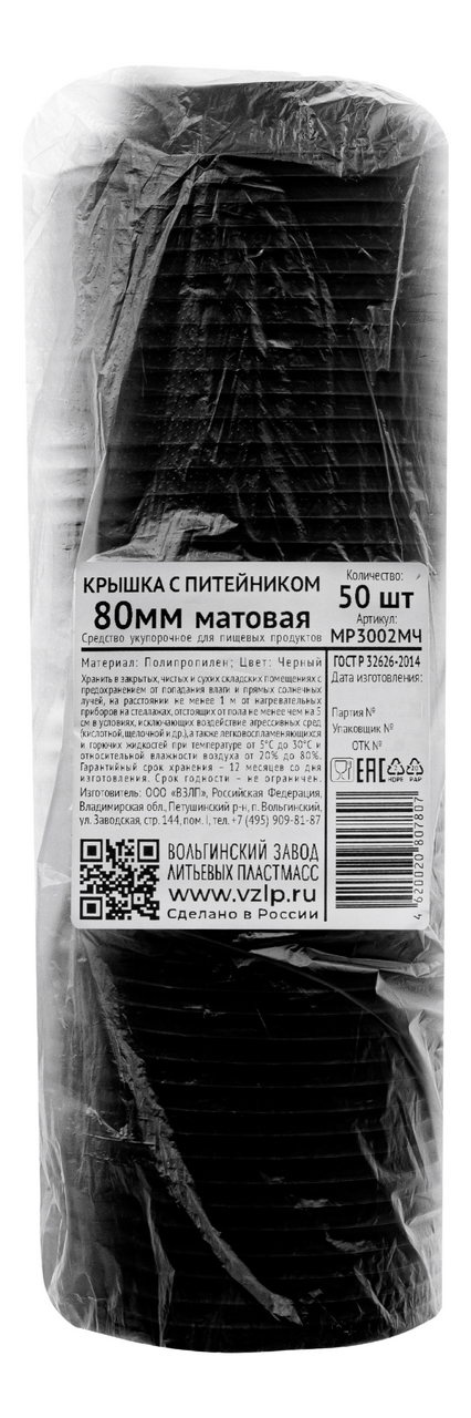 Крышка для стакана одноразовая Vzlp с питейником матовая пластиковая черная 8см, 50шт