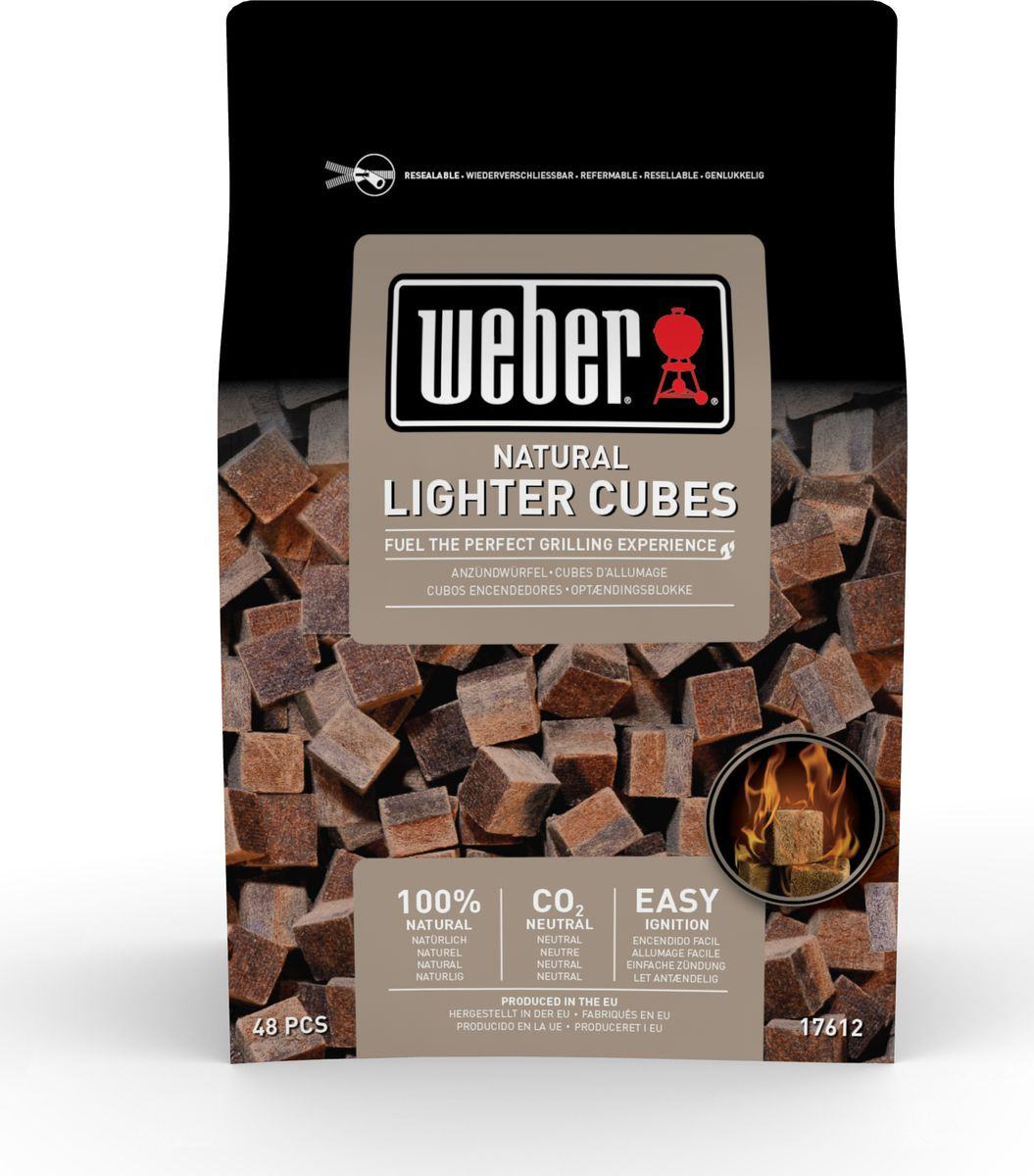 Кубики для розжига WEBER, натуральные позволят быстро и безопасно разжечь уголь для гриля. Они представляют собой альтернативу жидким смесям, однако в отличие от них не наносят вреда окружающей среде. Кубики WEBER изготовлены из переработанной древесины и выполнены на полностью натуральной основе – в состав этого продукта входят лишь спрессованные под давлением древесные опилки. Кубики не содержат парафинов и токсичных компонентов, а во время их горения не выделяется дым и неприятные запахи. Натуральные кубики легко узнать по характерому коричневому цвету естественной древесины.