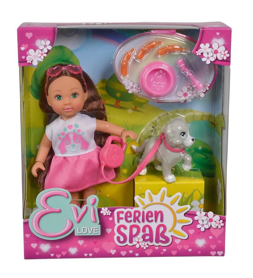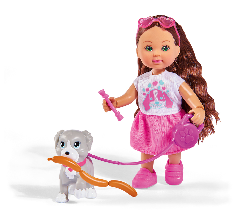 Кукла Еви 12см. с шарнирыми ручками, с собачкой и аксессуарами, 8 предметов. Возрастное ограничение 3+
