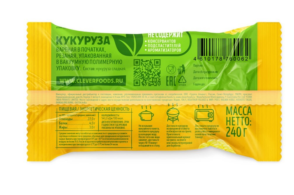 Натуральная кукуруза в початках нарезанная на кусочки, сочная и вкусная. Кукуруза имеет приятный сладковатый вкус и нежную текстуру. Отлично подходит для приготовления первых блюд, гарниров, салатов, омлетов.