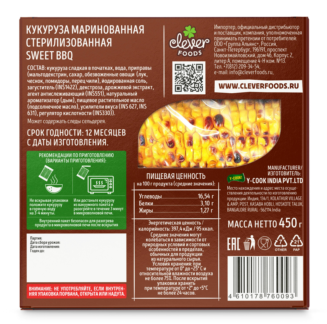 Кукуруза маринованная Sweet BBQ, 450г - натуральная маринованная и приготовленная кукуруза на пару, с добавлением специй. Сочная, вкусная в початках.
