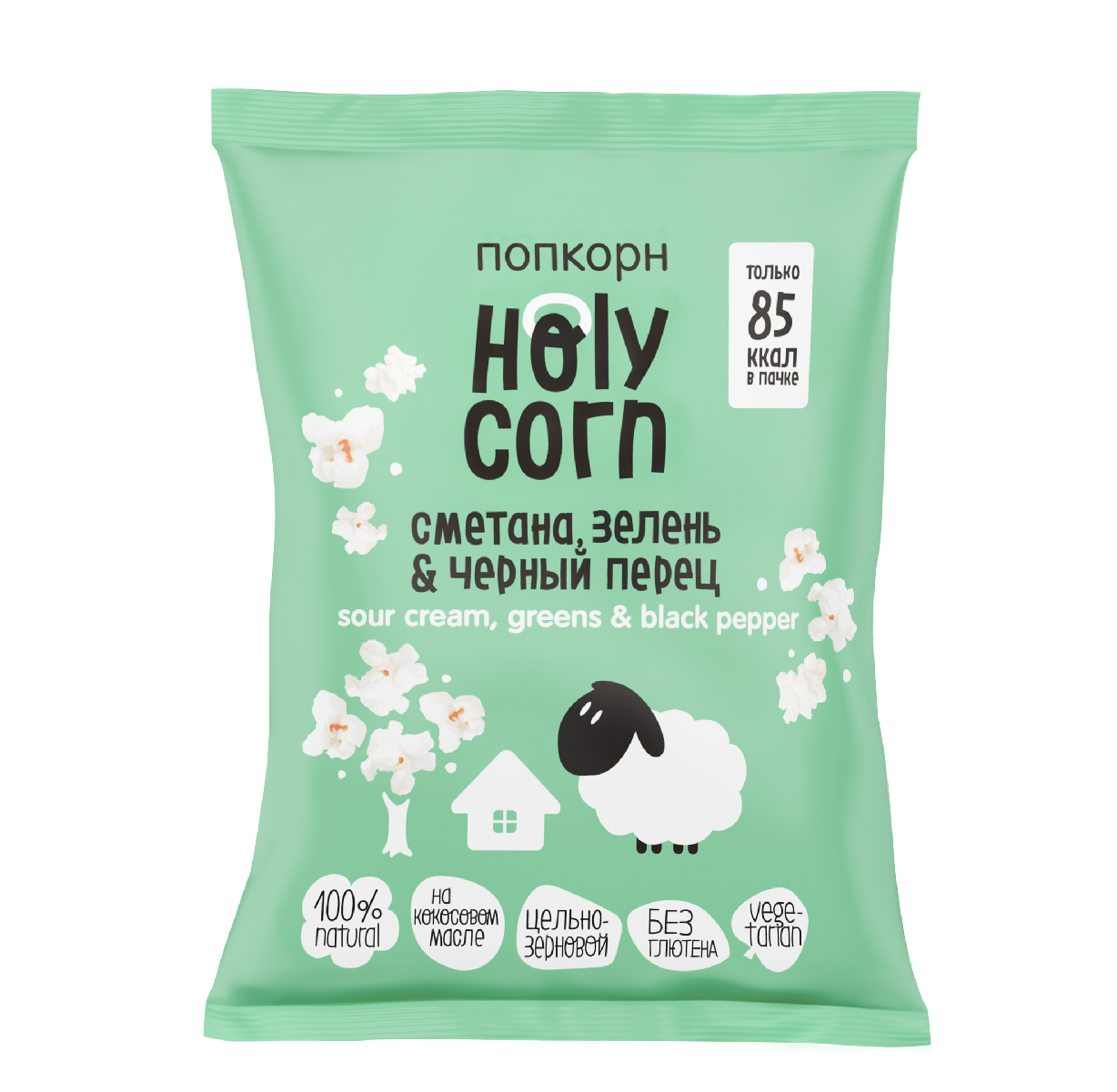 Ого! Это что-то новое! Разве бывает попкорн со сметаной, зеленью и чёрным перцем? Конечно, бывает. Попкорн Holy Corn Сметана-зелень-чёрный перец – это идеальный снэк, а еще вкусная и полезная альтернатива чипсам! Скорее открывай пачку, наслаждайся уникальным вкусом и #холикорни каждый день!