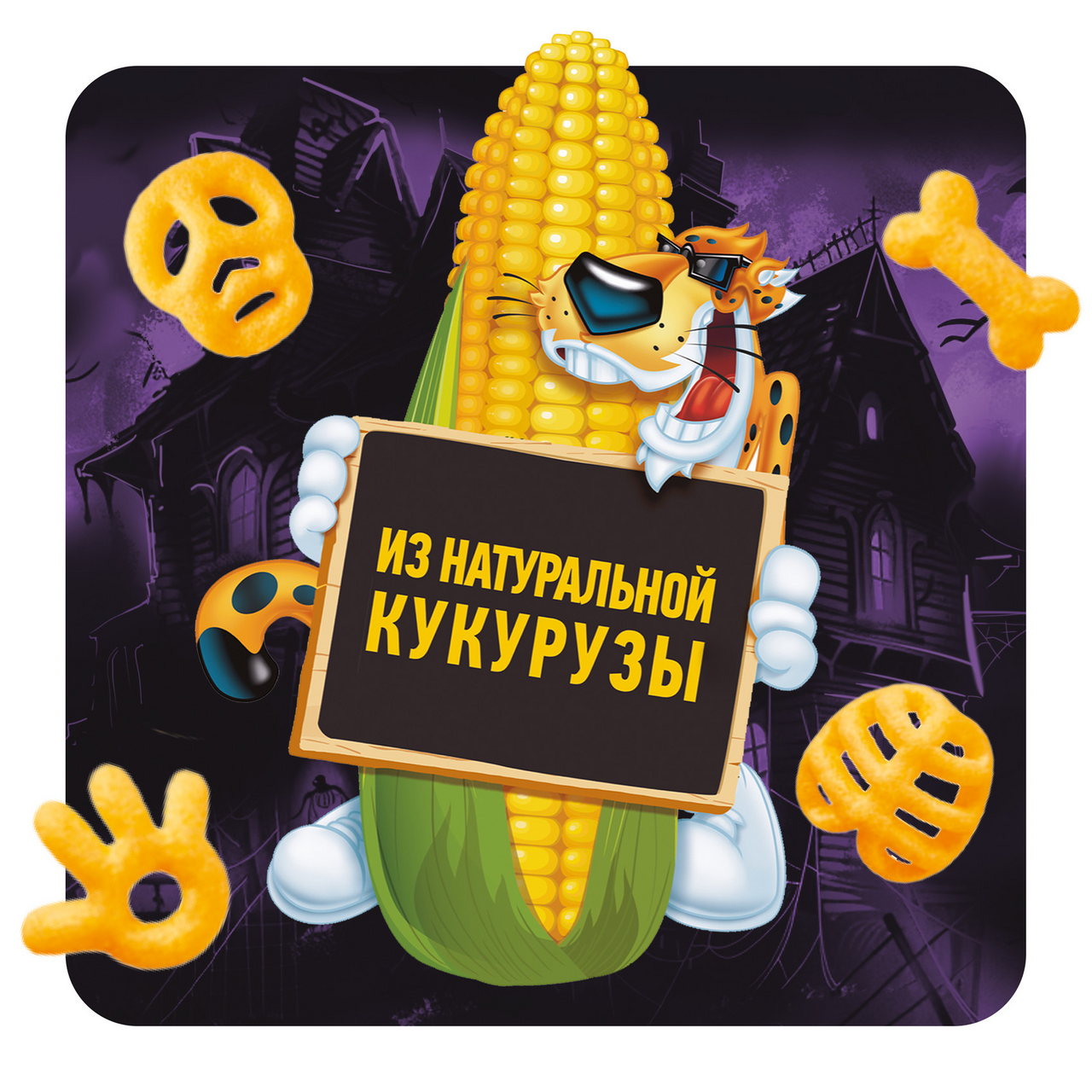 Крупа кукурузная, масло растительное, ароматизатор пшеничная мука, сухая молочная сыворотка, соль, усилители вкуса и аромата глутамат натрия 1-замещенный, 5'-гуанилат натрия 2-замещенный, 5'-инозинат натрия 2-замещенный, агент желирующий хлорид калия, сахар, вкусоароматические вещества, регулятор кислотности лимонная кислота, краситель экстракт паприки.