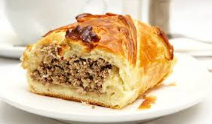 Выпечен из невесомого слоеного теста, которое отличается воздушным, рыхлым мякишем и румяной корочкой. Начинен пряной говядиной. Подходит для перекуса.