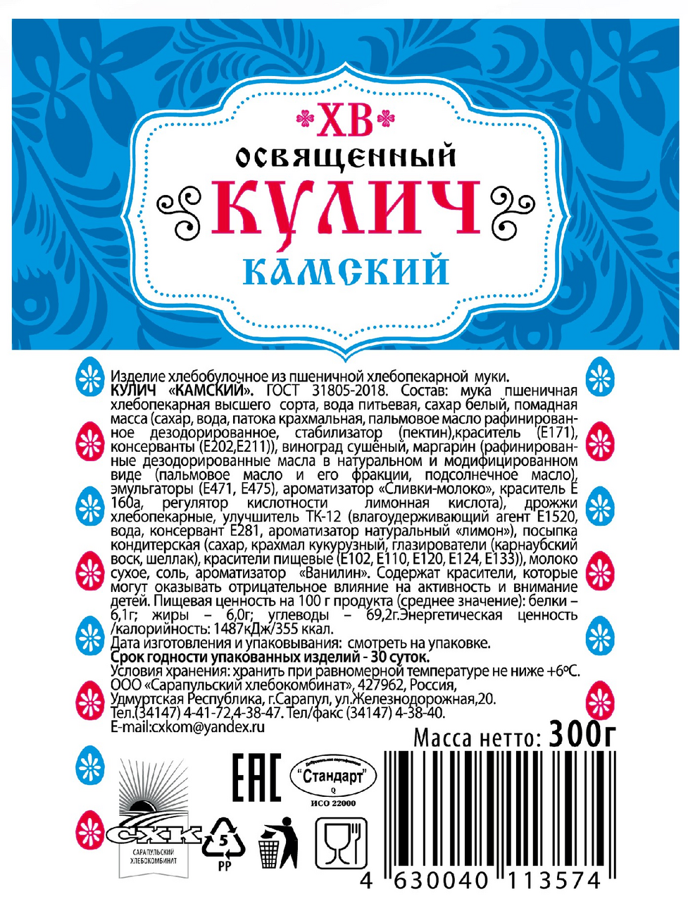 Кулич СХК Камский, 300г