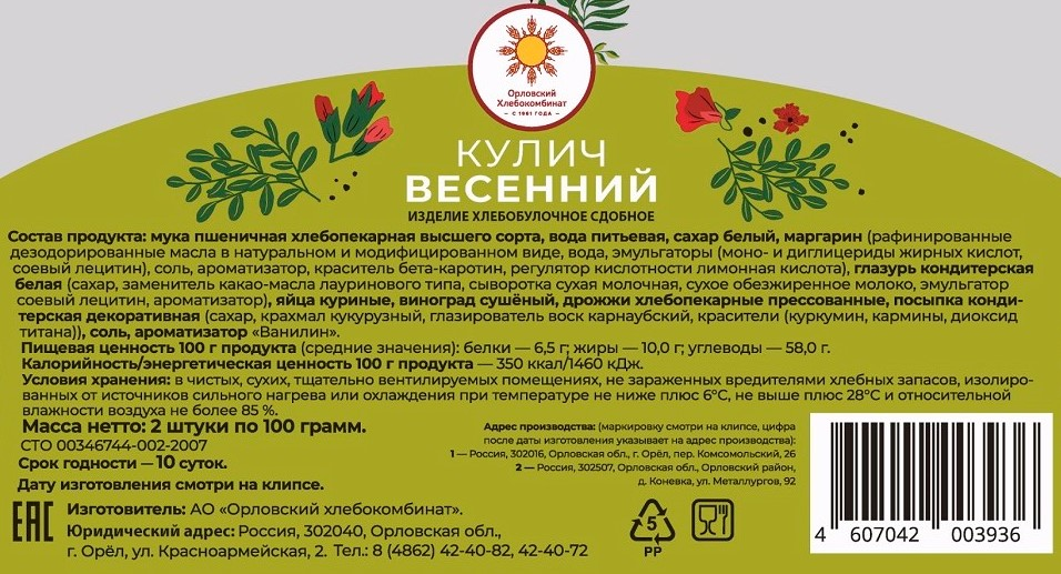 - Бренд ОРЛОВСКИЙ ХЛЕБОКОМБИНАТ
