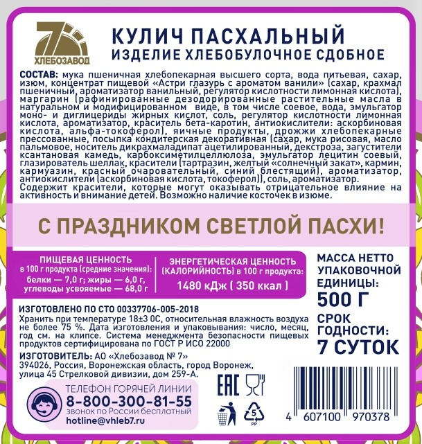 Кулич Пасхальный Славна 500г