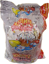 Мука пшеничная высший сорт, сахар-песок, изюм, маргарин, яйцо куриное пищевое, вода питьевая, дрожжи хлебопекарные прессованные, крупка цветная, молоко сухое цельное, масло растительное, соль поваренная пищевая, ванилин.