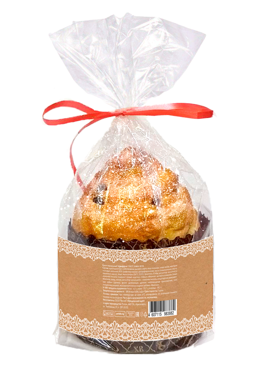 Краффин - это уникальное сочетание традиционного пасхального кулича и маффина. Нежное тесто с натуральными ингредиентами, такими как изюм, цукаты и орехи делают его вкус неповторимым. Производится из натуральных ингредиентов и преимущественно из местного сырья. Тесто нежное, сладкое, с большим количеством изюма. Украшен цветной посыпкой.