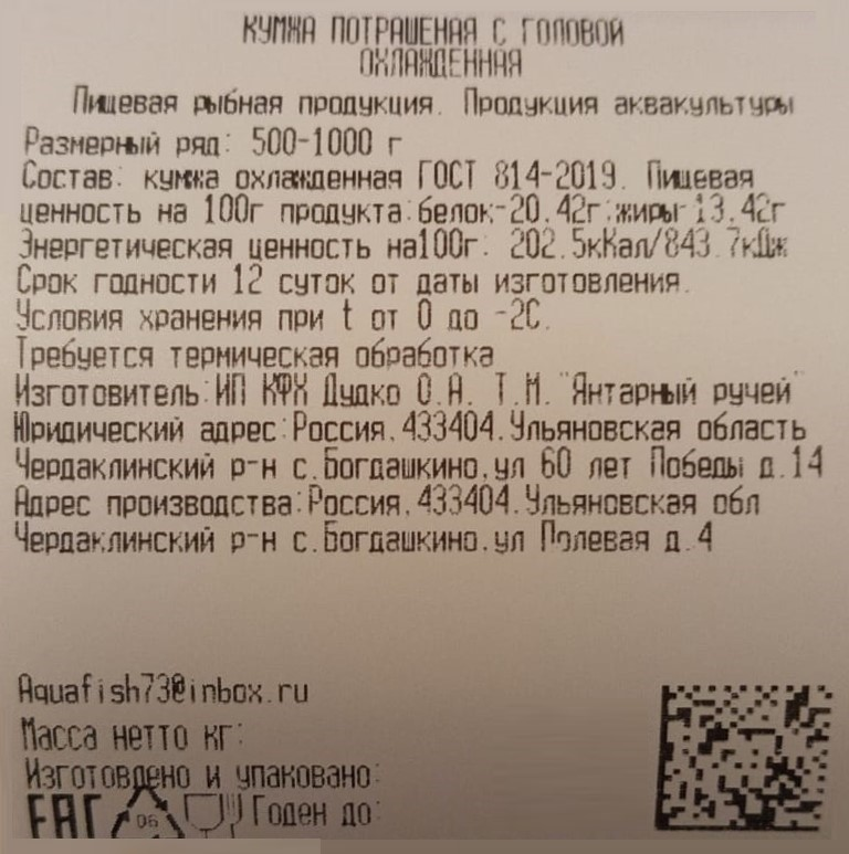 Кумжа потрошеная с головой охлажденная, ~0.5-1кг