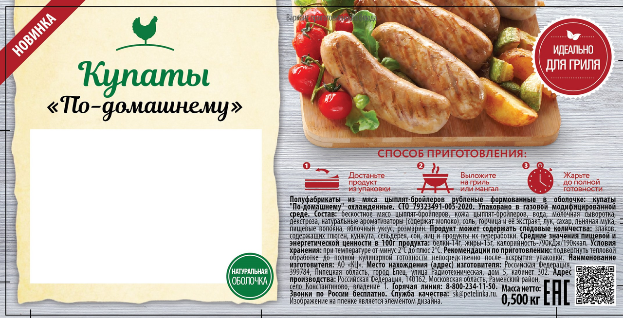 Купаты Петелинка цыпленок-бройлер по-домашнему охлажденные, 500г