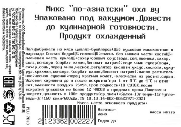 Курица Павловская курочка микс по-азиатски охлажденная, ~1.3кг