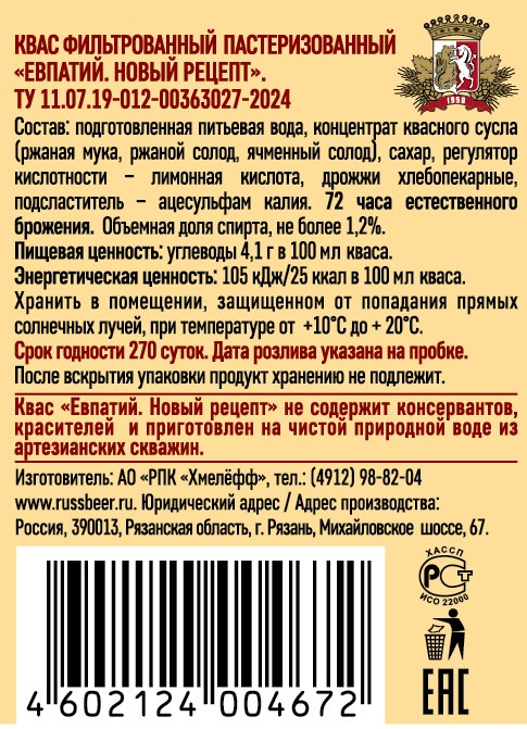 Квас Евпатий. Новый рецепт - современный взгляд на традиционный квас. Мы сохранили богатый вкус и аромат, но сделали еголегче, чтобы вы могли наслаждаться им каждый день. Обновленный рецепт включает сбалансированную композицию ингредиентов, что позволяет достичь мягкого вкуса с характерной кислинкой, сохраняя все полезные свойства кваса. Современный взгляд на традиционный квас. Мы сохранили богатый вкус и аромат, но сделали его легче, чтобы вы могли наслаждаться им каждый день. Обновленный рецепт включает сбалансированную композицию ингредиентов, что позволяет достичь мягкого вкуса с характерной кислинкой, сохраняя все полезные свойства кваса.