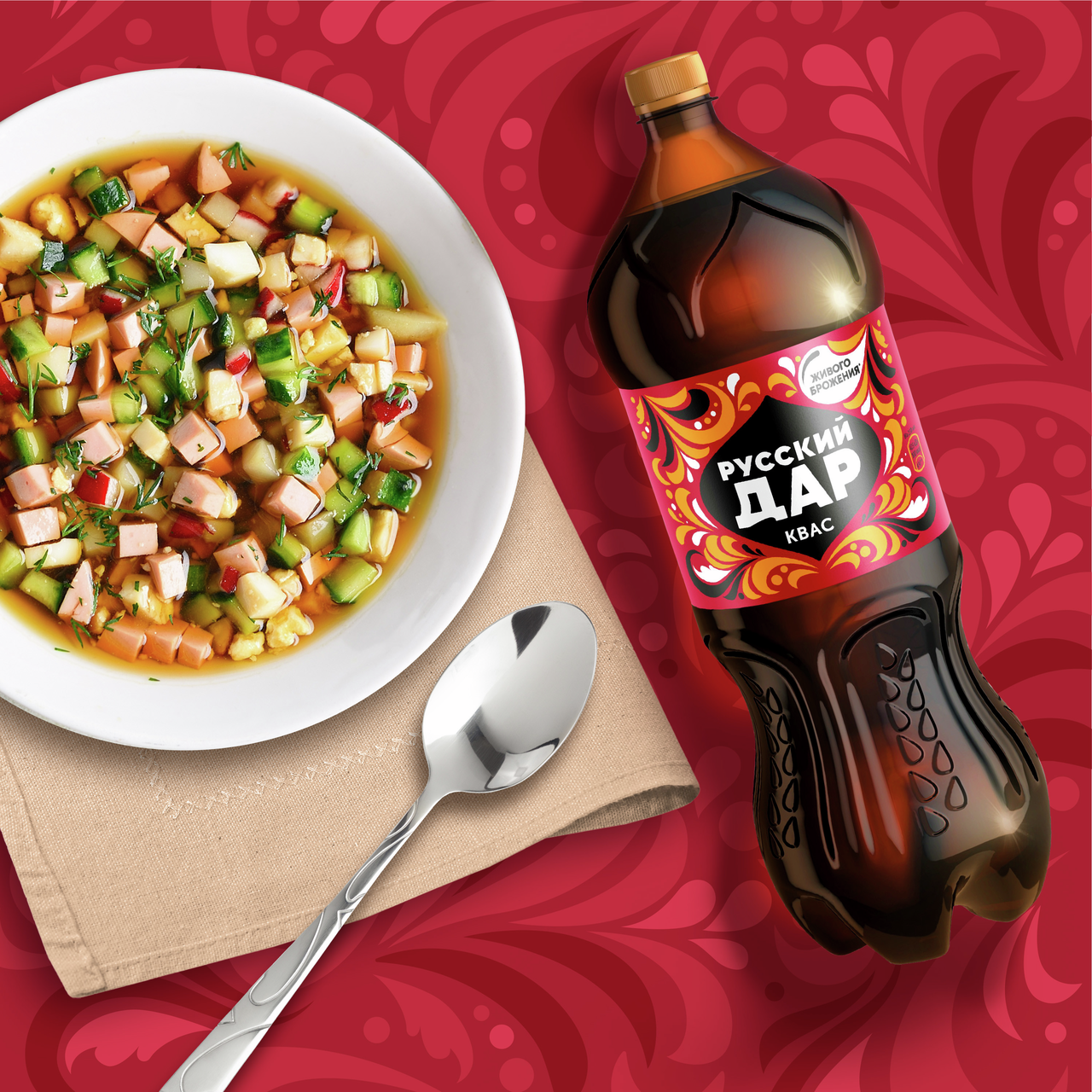 Квас Русский дар Традиционный 2 л - натуральный квас дрожжевого брожения. Русский Дар приготовлен из ржаной муки и солода без использования консервантов и подсластителей. У него прекрасный полный вкус с легкой кислинкой, насыщенный темно-янтарный цвет и бодрящий чистый аромат. Такую бутылку удобно брать с собой в дорогу или на прогулку. Квас не только хорошо утоляет жажду и освежает, но и, обладая целебными свойствами, благоприятно воздействует на весь организм. Согласно лабораторным исследованиям Росконтроля, квас Русский дар обладает хорошими органолептическими показателями.