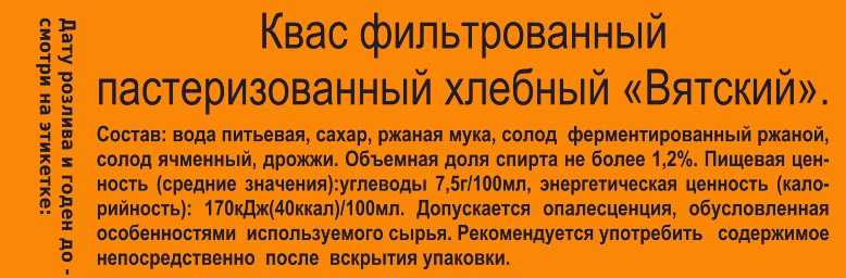 Вода питьевая, сахар или глюкозно-фруктозный сироп, или глюкозно-фруктозный сироп и сахар, ржаная мука, солод ферментированный ржаной, солод ячменный, регулятор кислотности - молочная кислота, дрожжи хлебопекарные.