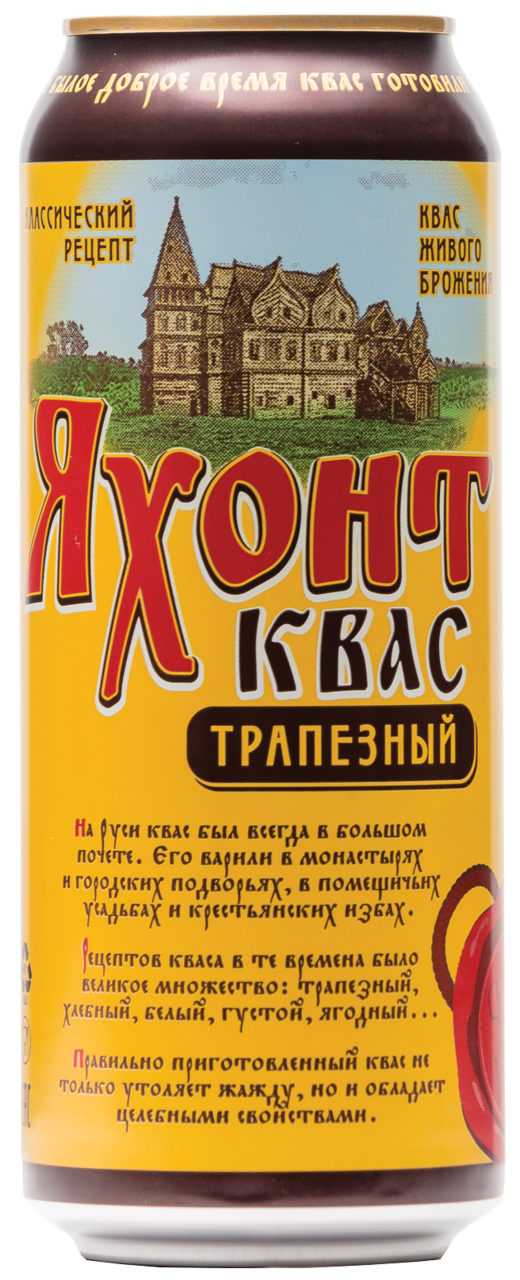 Фильтрованный пастеризованный квас Трапезный торговой марки Яхонт не только эффективно утоляет жажду в жаркое время года, но и отлично подходит для приготовления традиционной русской окрошки. Для изготовления напитка используются только натуральные компоненты без искусственных консервантов, в том числе чистая артезианская вода, ячменный и ржаной солод, а также сахар. Жестяную банку с ключом для быстрого открывания удо��но взять с собой на пикник или на прогулку.