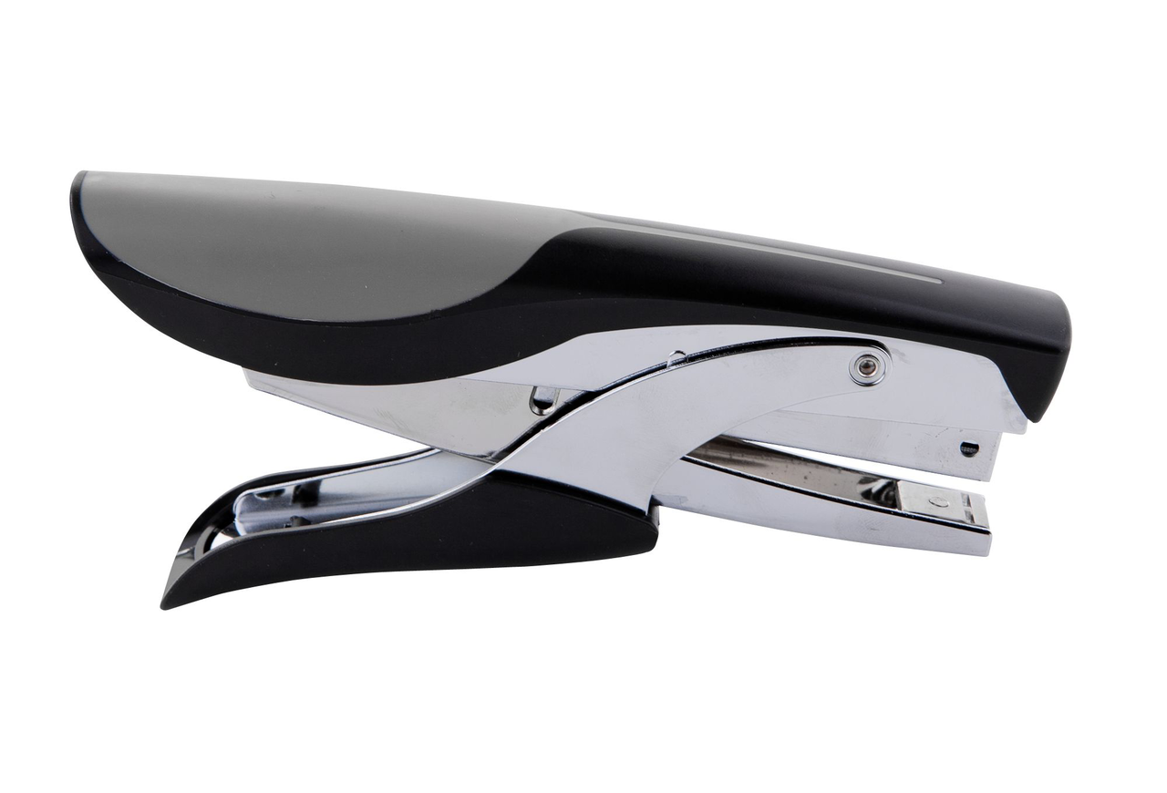 Степлер ручной, Кузнечик №10, KW-Trio, с эргономичной ручкой. Максимальная толщина сшиваемой бумаги: до 15 листов, вместимость 100 скоб. Материал: металл/пластик. Особенности: Эргономичная ручка. Цвет: серый/черный.