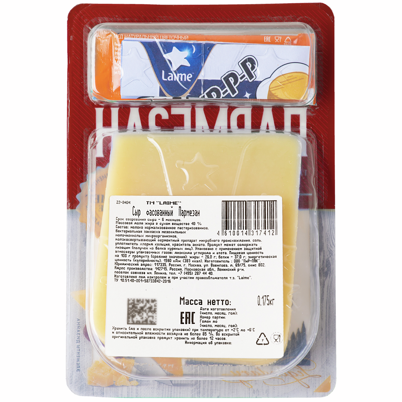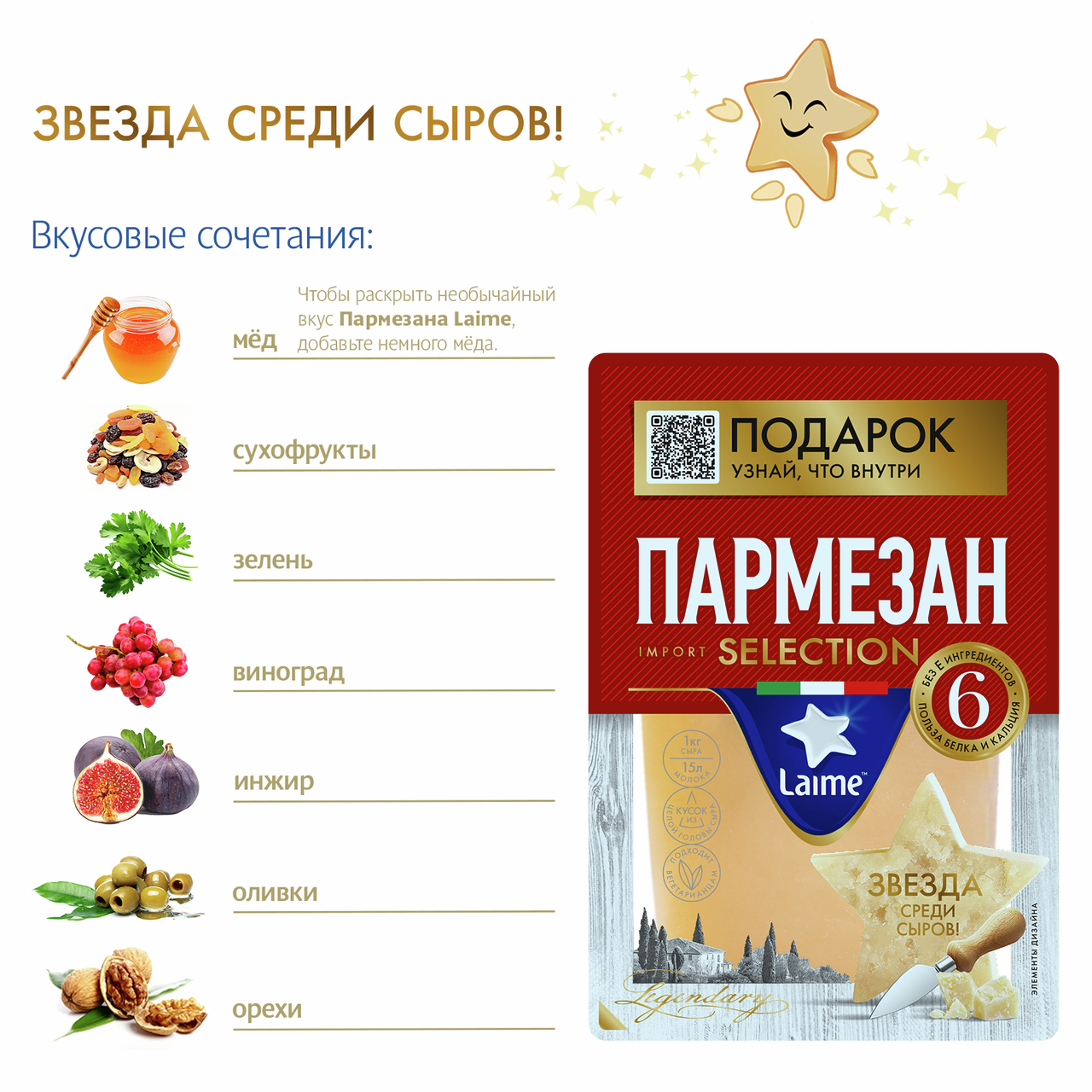 Сыр Laime Пармезан 6 месяцев созревания твердый без лактозы 40%, 175г