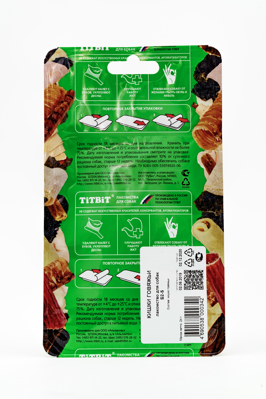 Лакомство Titbit для собак кишки говяжьи, 24г