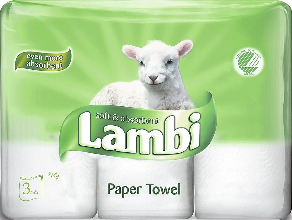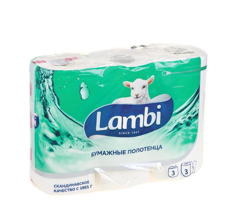 Lambi Полотенца бумажные трехслойные белые 3 рулона