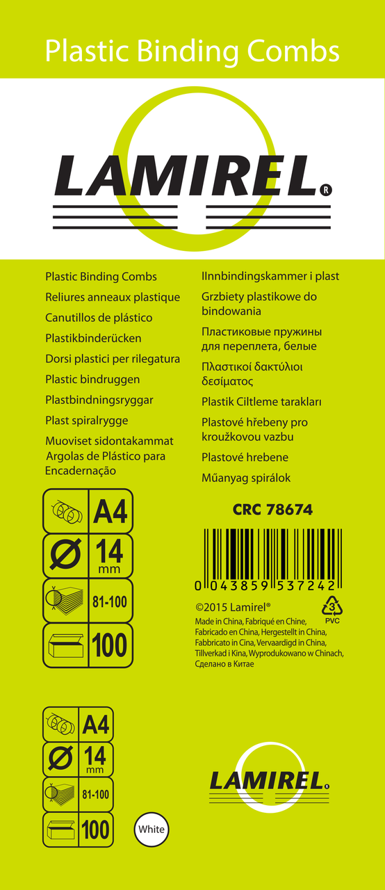 Пластиковая пружина для переплёта Lamirel предназначена для сшивания документов с помощью переплётчика или брошюратора. Диаметр составляет 14 мм, что даёт возможность сшивать в блок до 100 листов. Имеет шаг 14,28 мм (21 кольцо). Представленная пружина белого цвета. Позволит легко и быстро привести в порядок необходимые документы. Обладает высокой упругостью на разжим, надёжно удерживает листы в переплёте. Возможно многократное использование. Поставляется в упаковке по 100 штук.